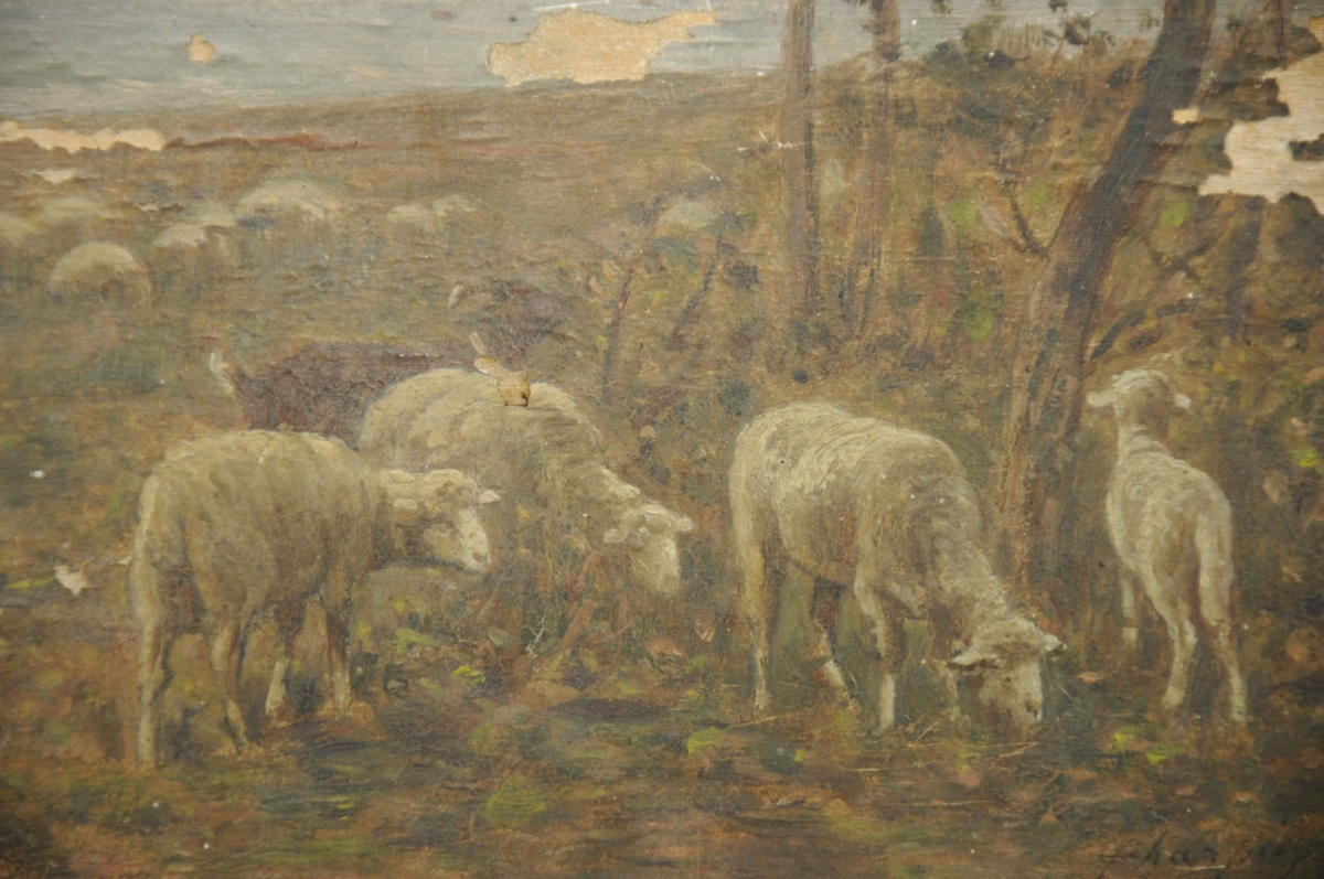 Huile sur panneau, signée en bas à droite.
