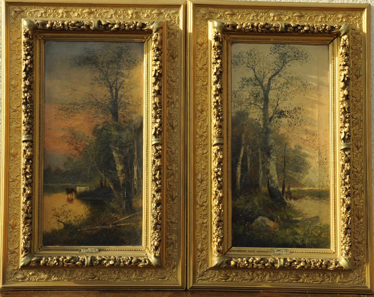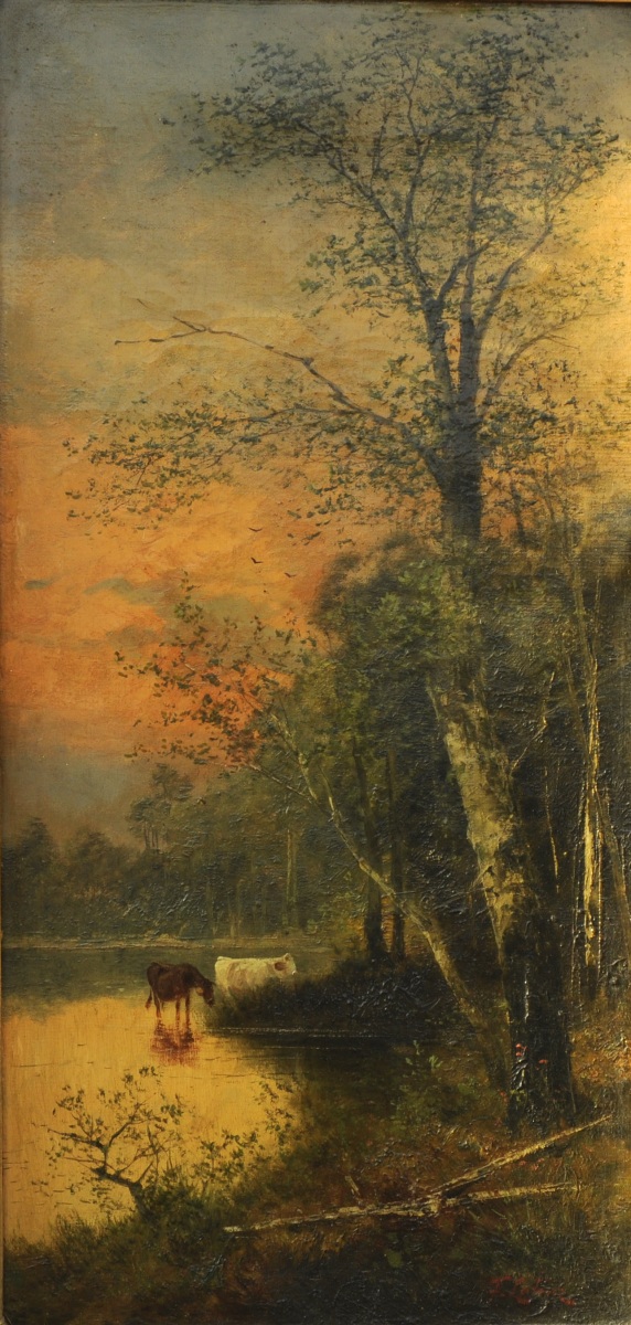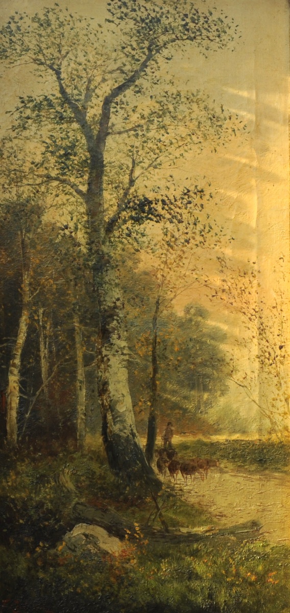 Paysages animés. Berger menant son troupeau de moutons et Vaches s'abrevant.