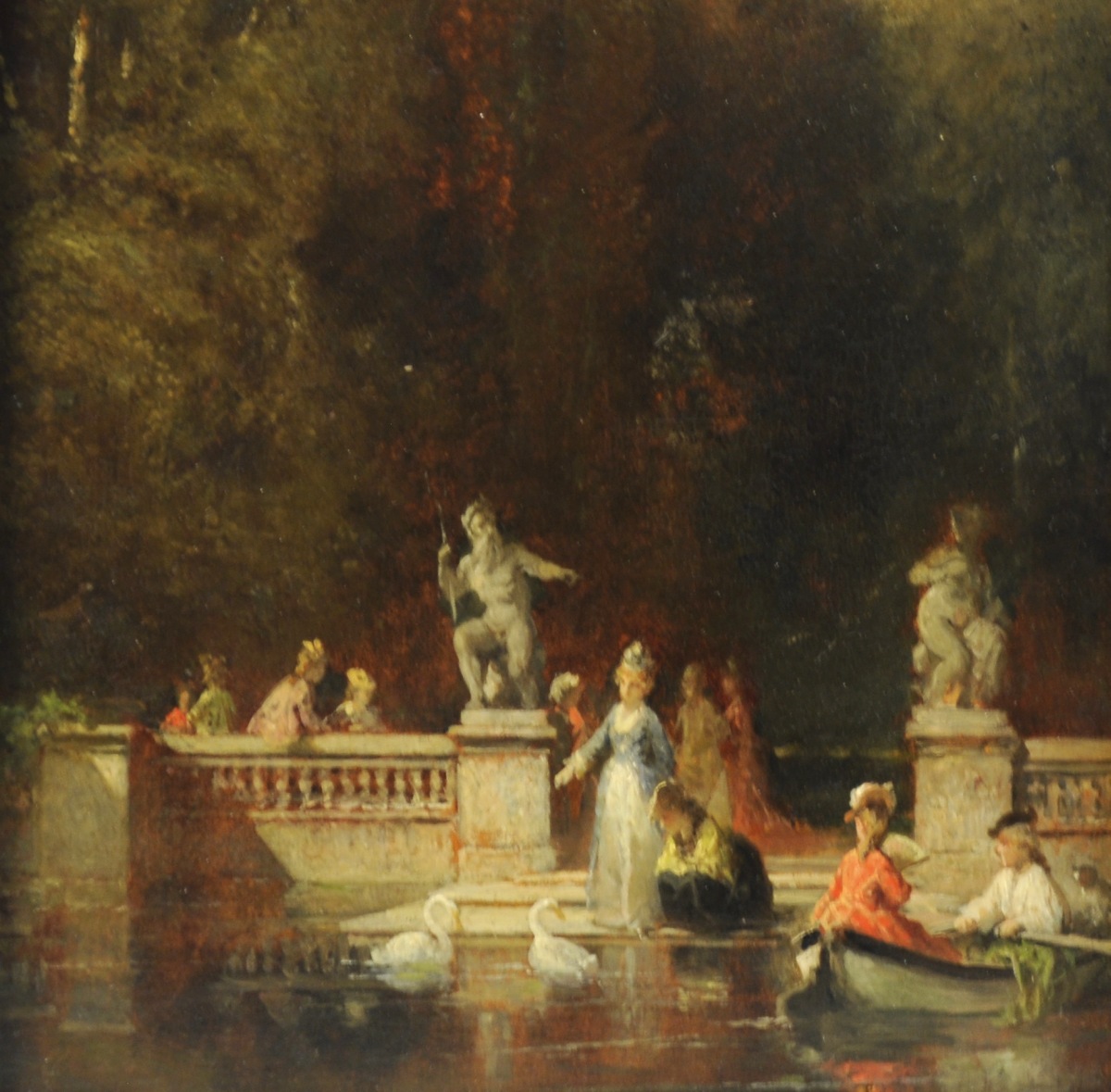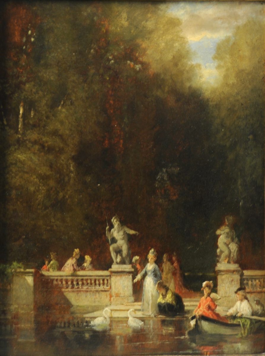 Élégantes au bord d'un bassin au XVIIIème siècle.