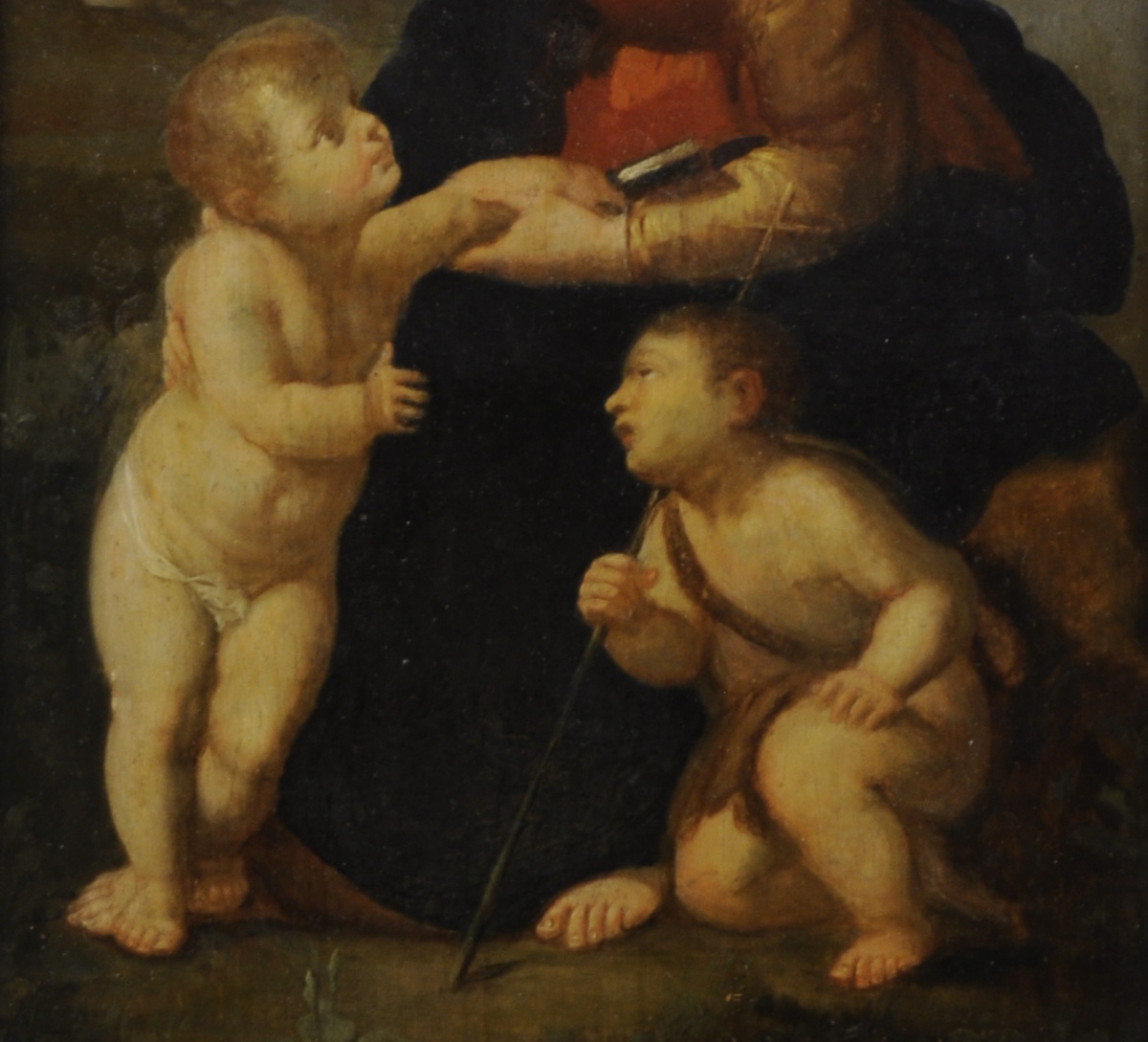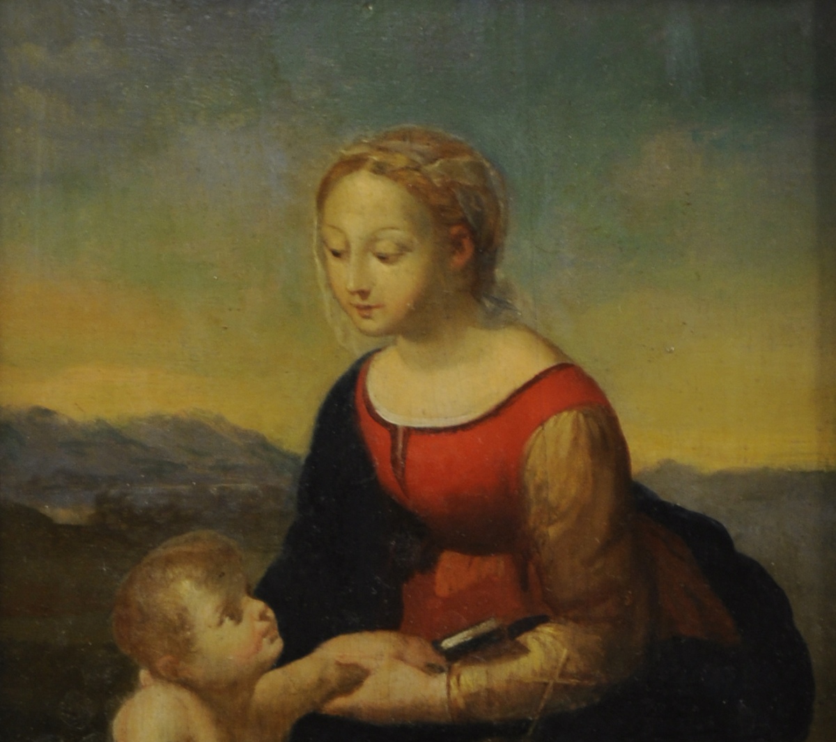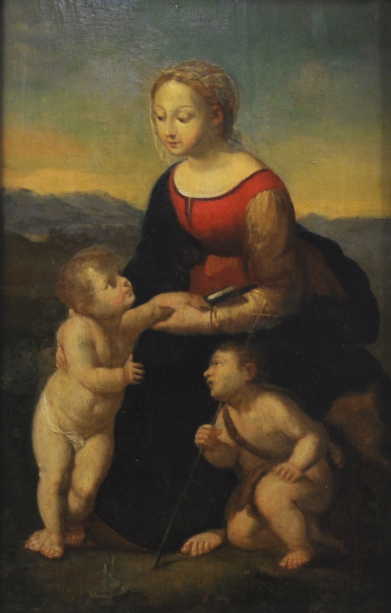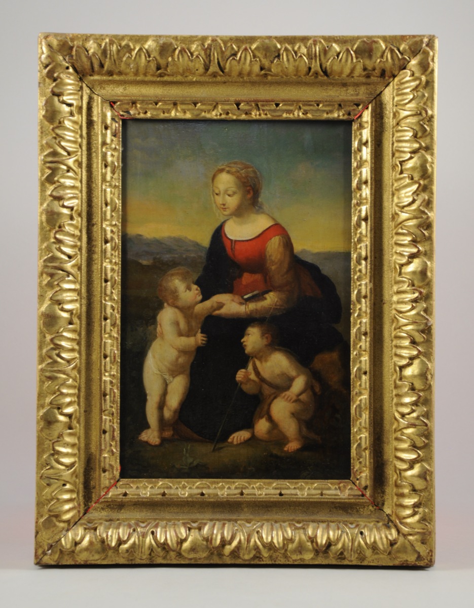 Réalisée d'après le tableau de Raphaël, dit La Belle Jardinière, peint vers 1507-1508, et conservé au Musée du Louvre.
