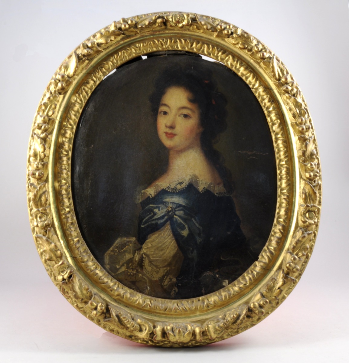 Portrait de jeune femme en robe bleue (très légers manques).