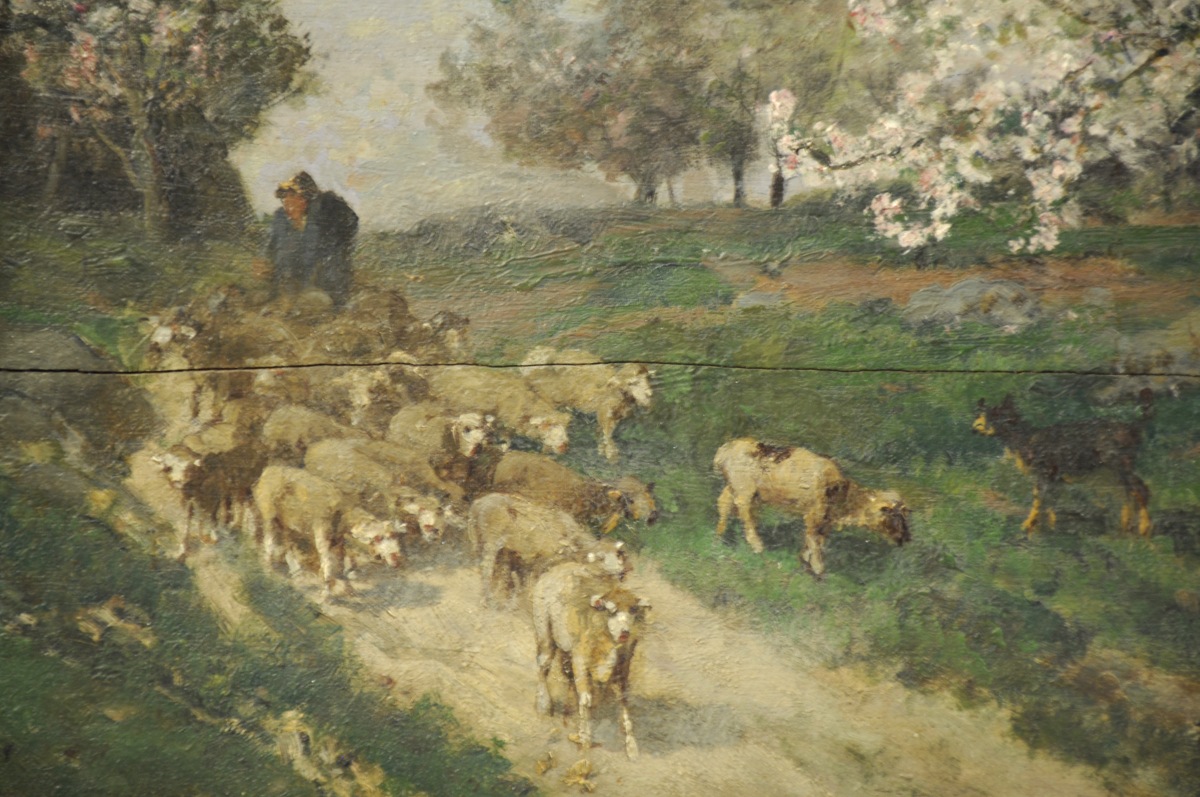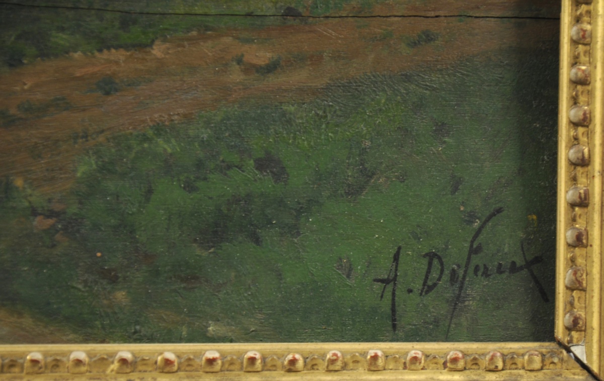Huile sur panneau, signée en bas à droite.