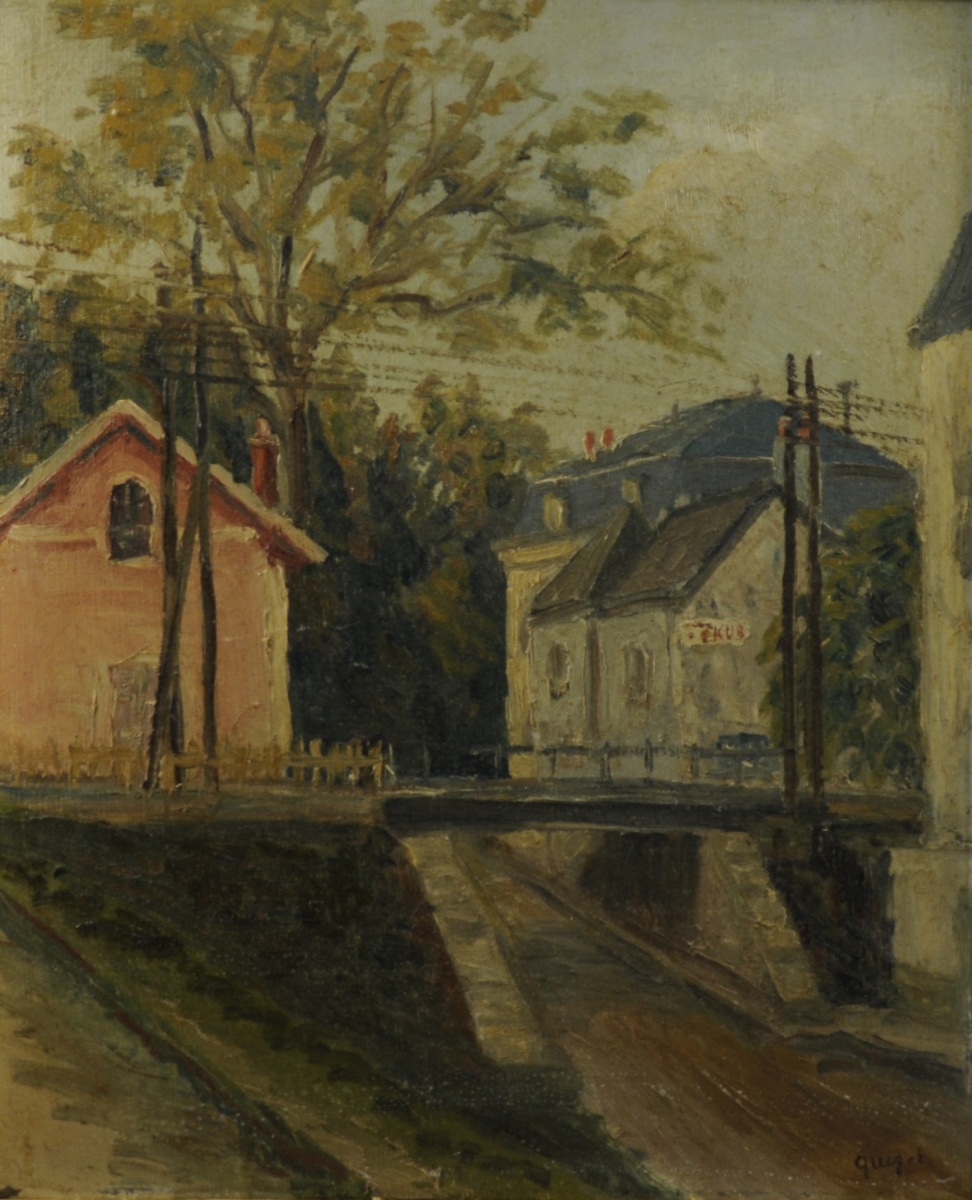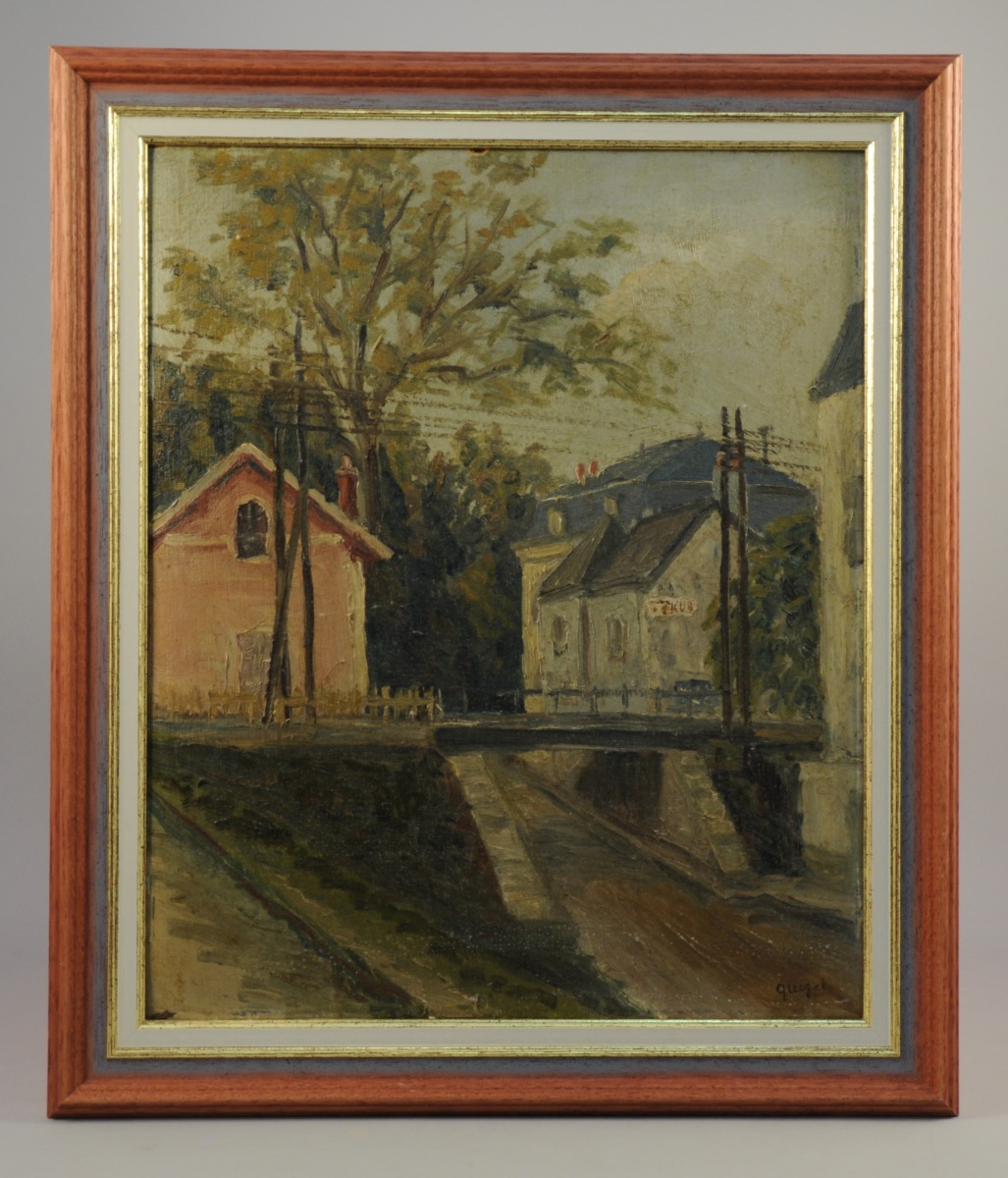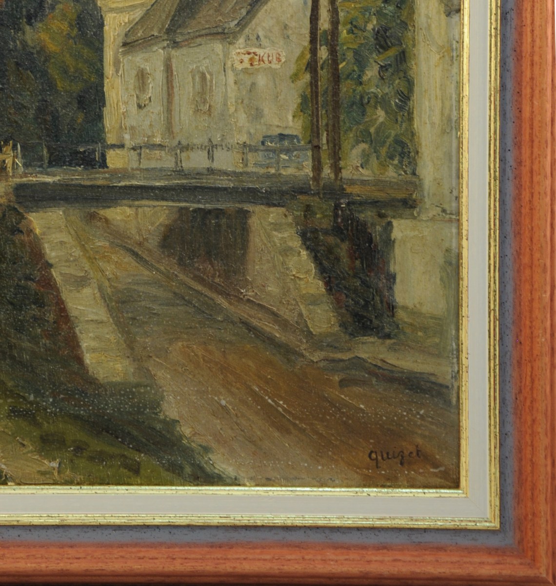 Isorel signé "quizet", étiquette au dos carton pochade 8 figures pour les peintures Sennelier. 46 x 38 cm (accidents).