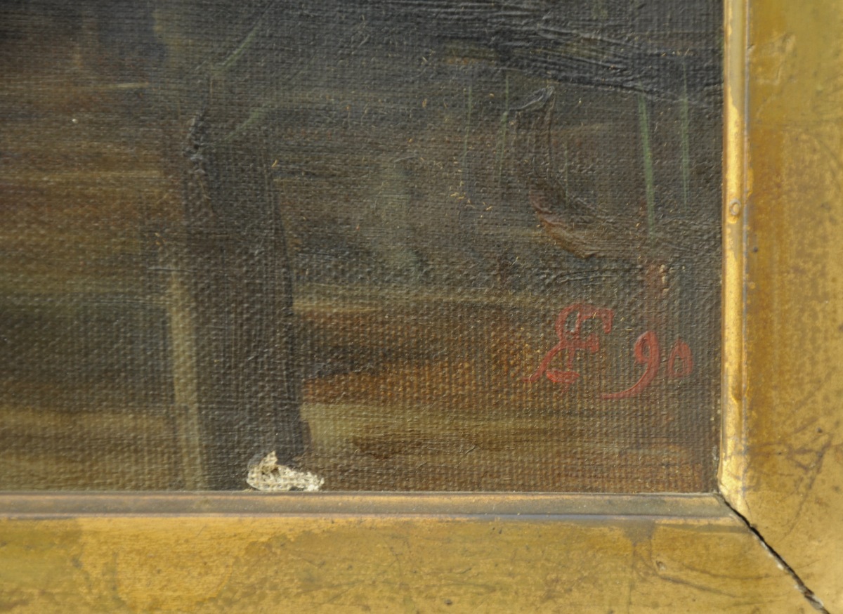 Toile monogramée "RF" et datée "90".