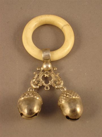 HOCHET en forme de gland double. Argenté. Anneau. Poids brut 13 g.