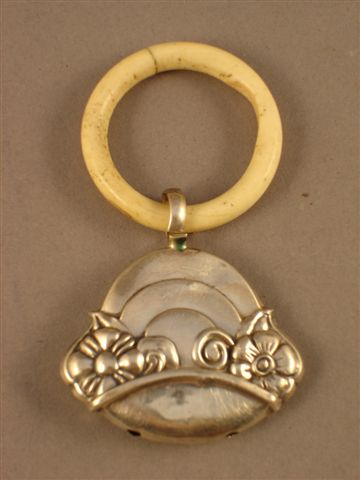 HOCHET en forme de panier fleuri. Argenté. Anneau. Poids brut 10 g.