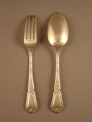 COUVERT en argent. Modèle coquille. Poinçon Minerve. Style Louis XV. Début XXème siècle. Poids 95 g. Dans un coffret.