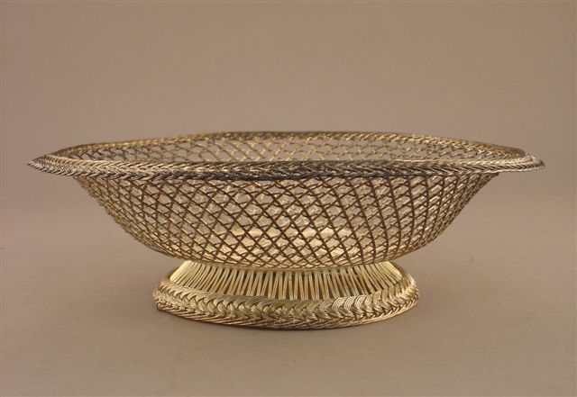 CORBEILLE en vannerie de fil de métal argenté.Haut. 9, Diam....