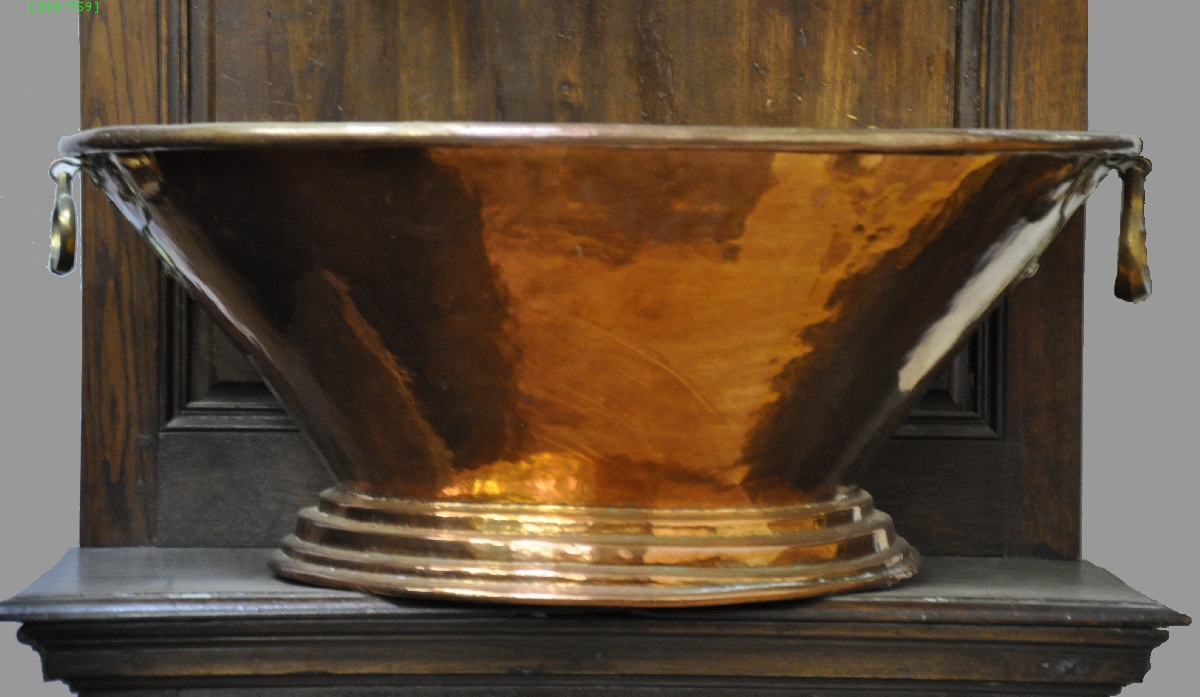 Bassin: Haut. 26, Larg. 65, Prof. 47 cm. (l'une des anses différente)