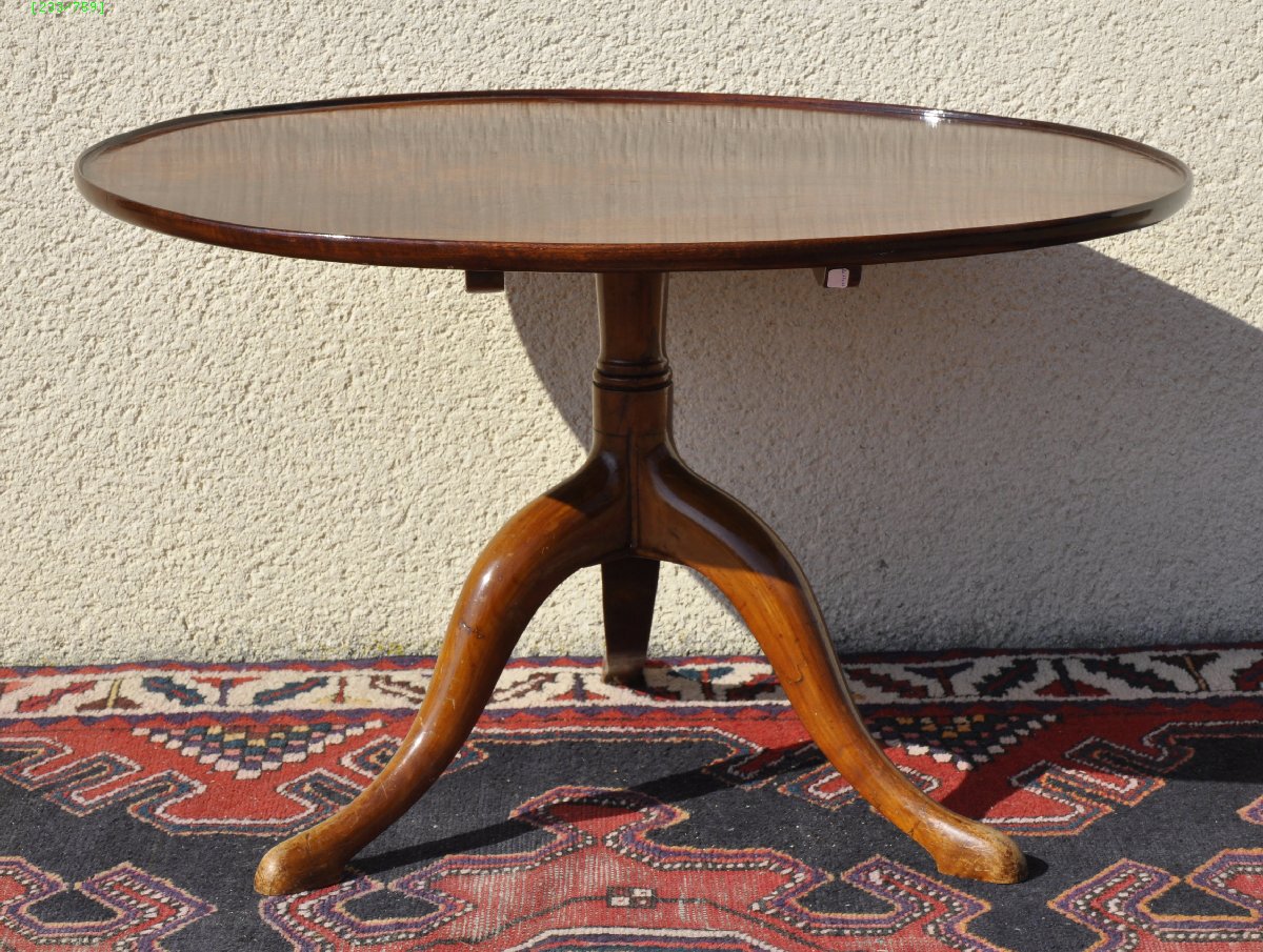 Petite TABLE en acajou à plateau ovale basculant. Elle repose sur un fût tripode.