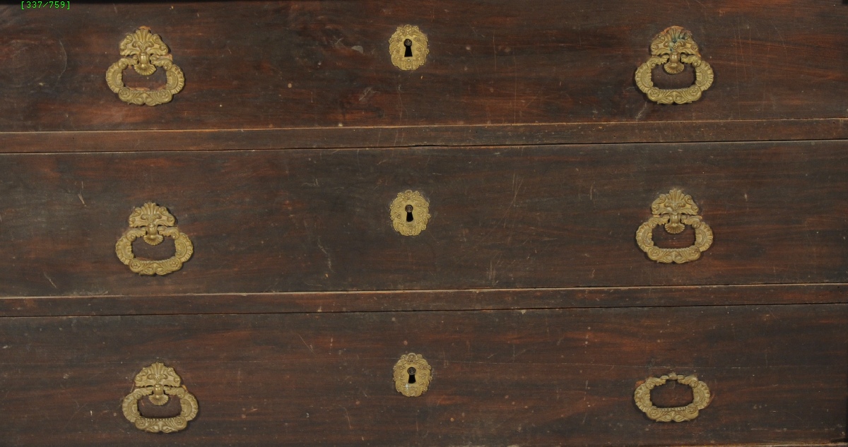 Haut. 92, Larg. 120, Prof. 60 cm. (accidents, un ornement de poignée manquant)