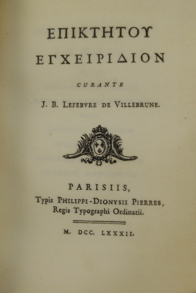 (LEFEBVRE de VILLEBRUNE). Epicteti, Enchiridion, ... Philippi-Dionysii Pierres, 1782.