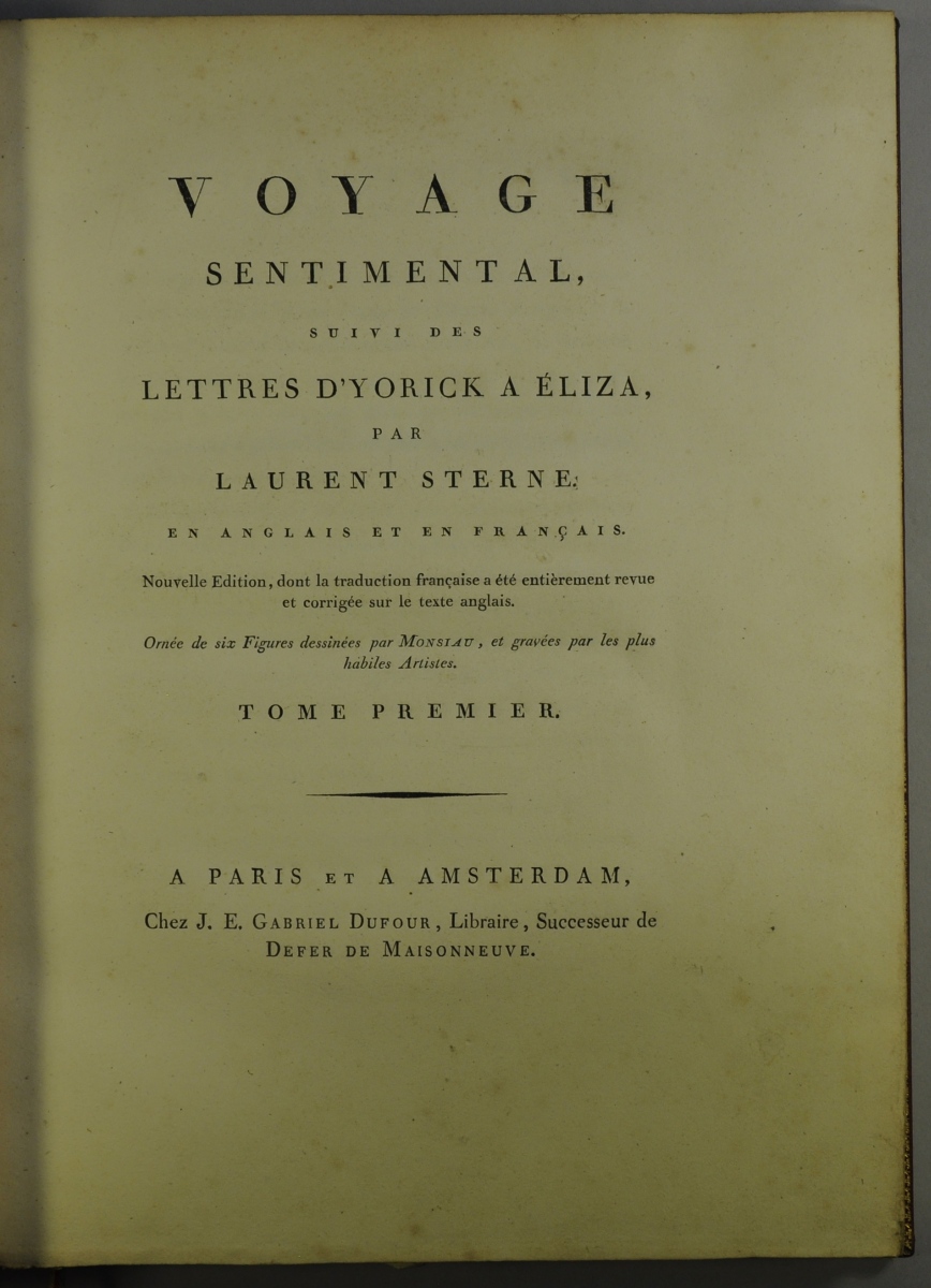 STERNE. Voyage sentimental suivi des lettres d'Yorick à Eliza. Gabriel Dufour (Imp. de Didot le Jeune), An VII.