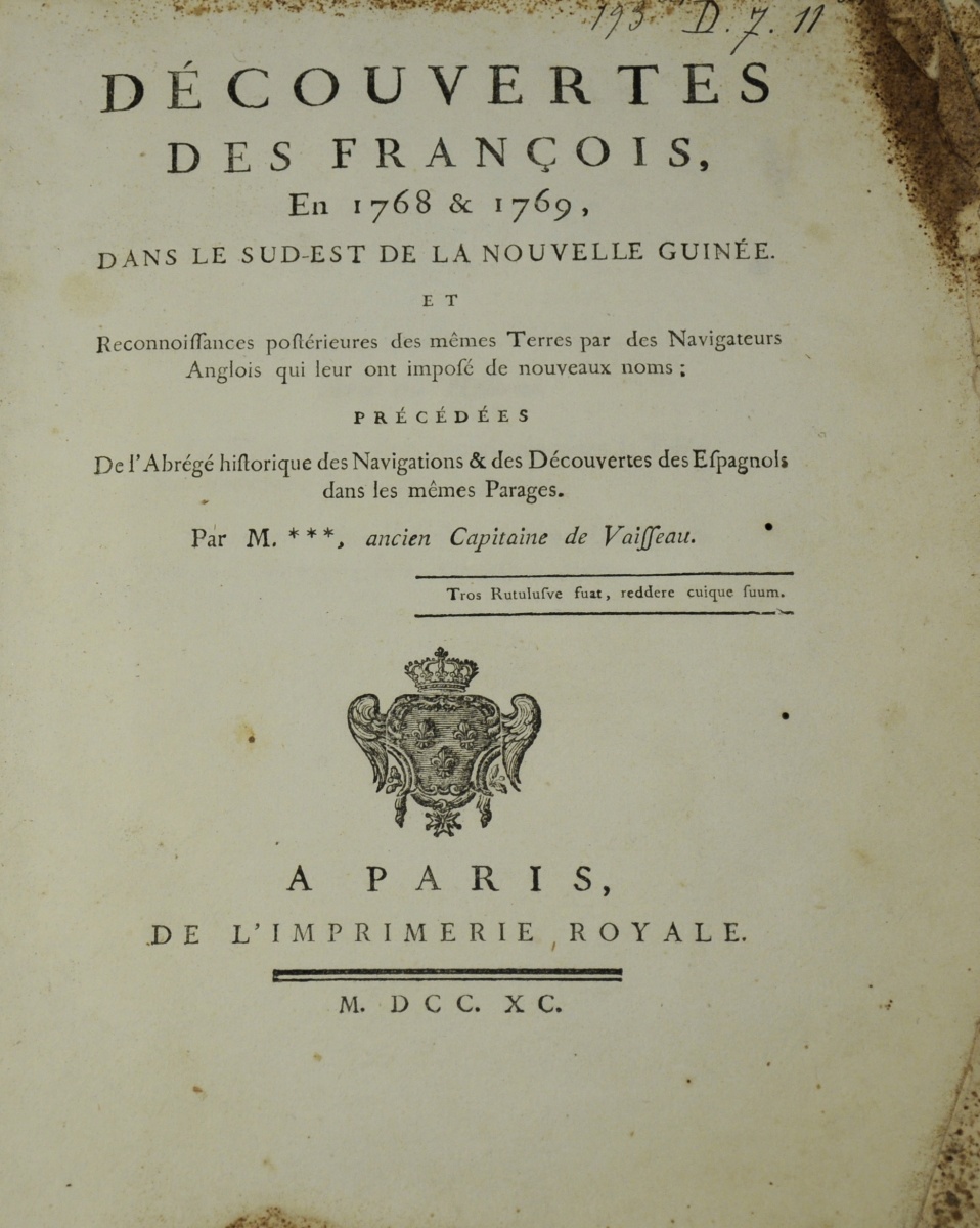 Découvertes des Français , en 1768 et en 1769, dans le Sud-Est de la Nouvelle-Guinée