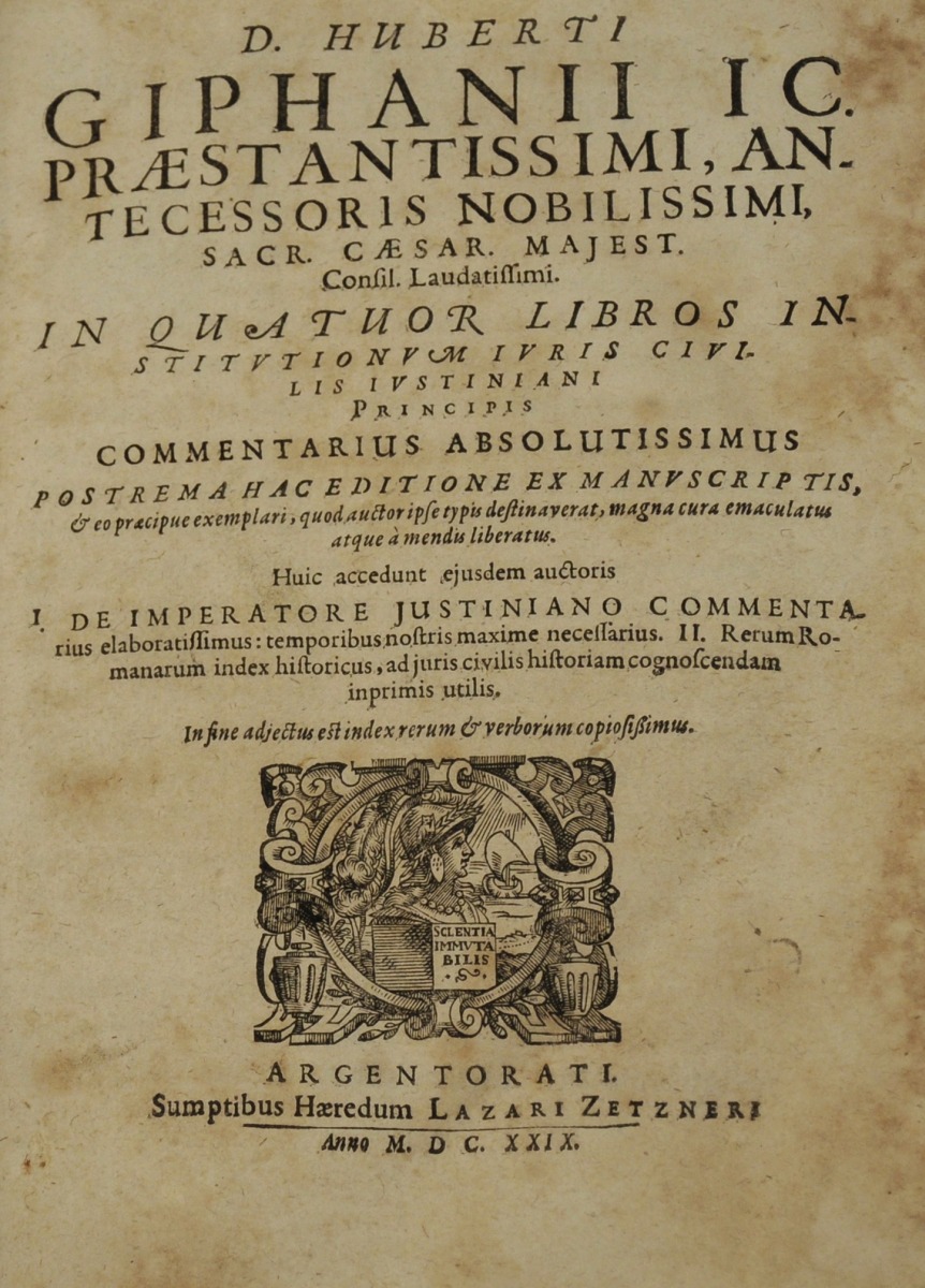 GIPHANIUS. Huberti Giphanii ic Praestantissimi, antecessoris Nobillissimi,
