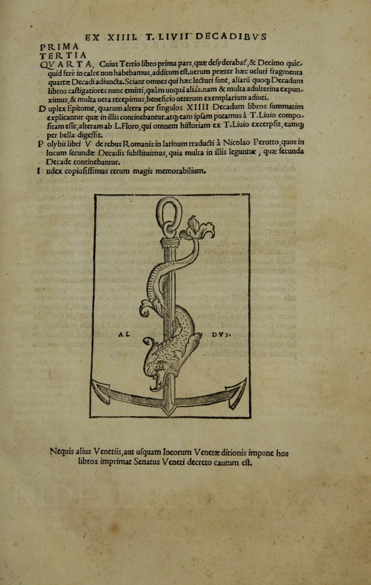 TITI LIVII Pata vini decas. Venetiis in aedibus Aldi, 1520. In-4 basane post. qq défauts.
