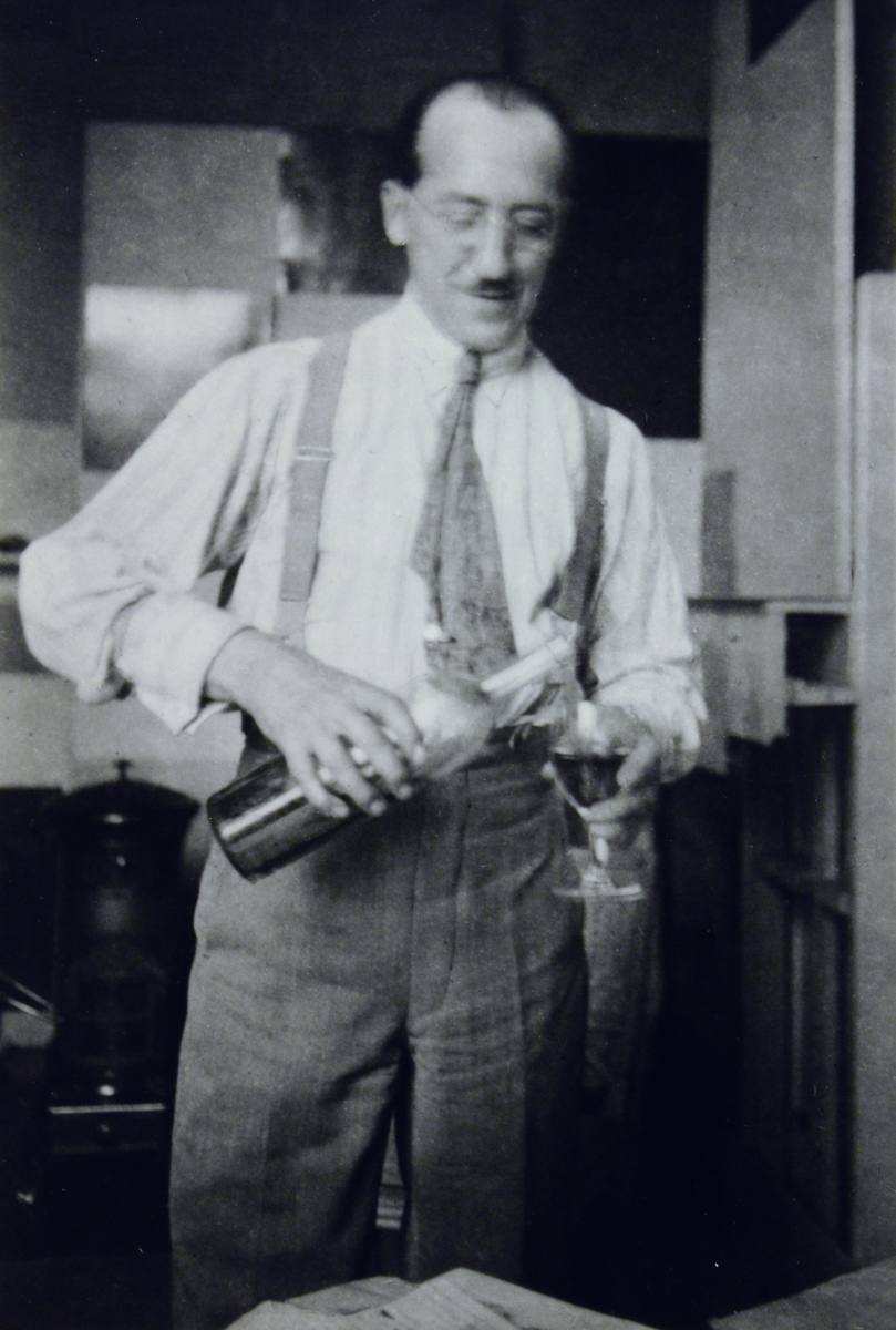 Cette rarissime photographie inédite, prise en juillet ou en août 1926, fait découvrir le peintre sous un jour plutôt jovial, servant un verre de vin à son hôte (probablement le photographe).