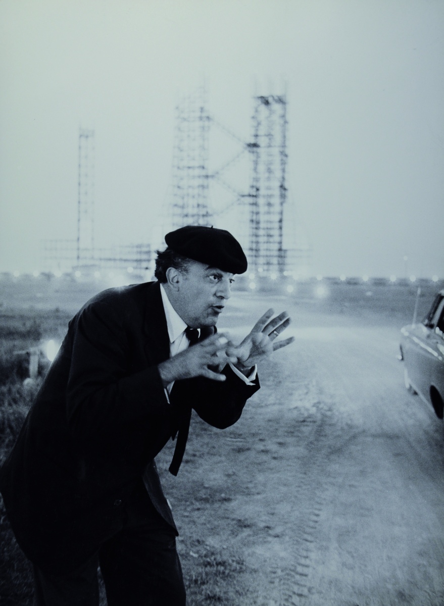 Fellini pendant le tournage de "Huit et demi (Otto et Mezzo)", Cinecittà, 1963