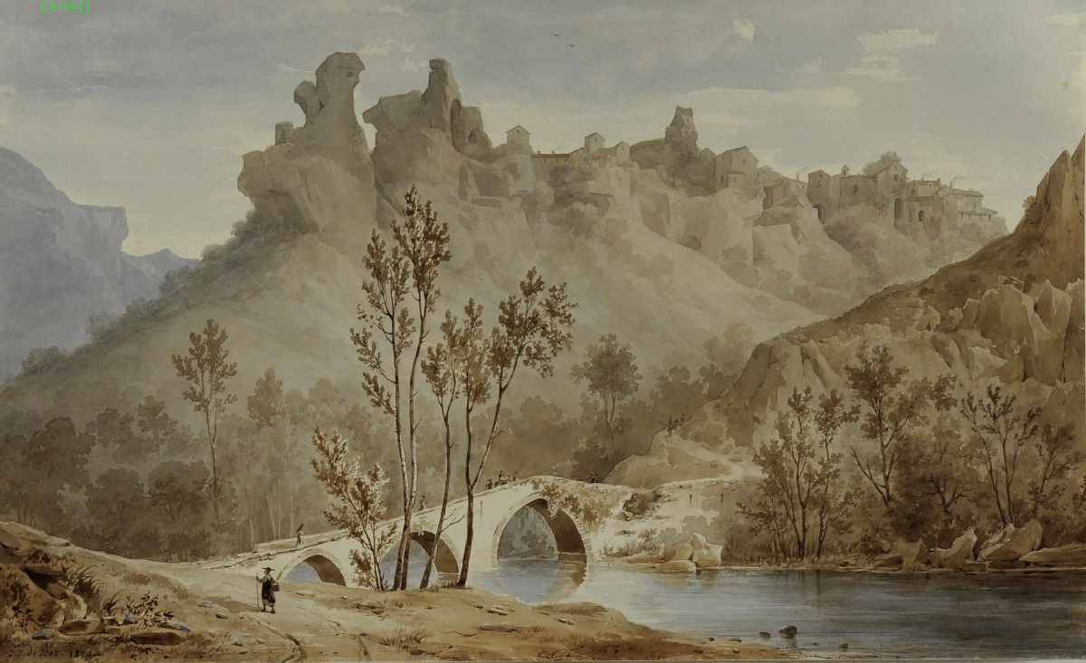 Aquarelle signée et datée 1829, contrecollée et titrée sur le carton.