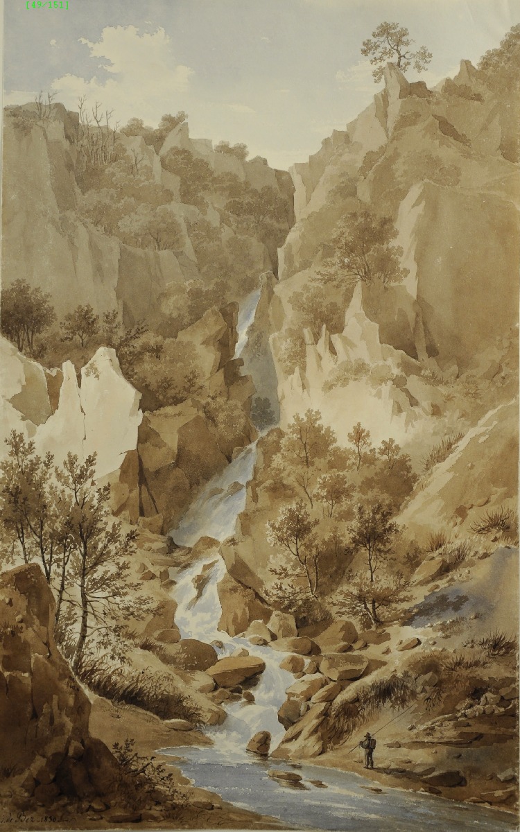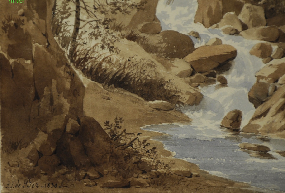 Aquarelle signée et datée 1830, contrecollée et titrée sur le carton.