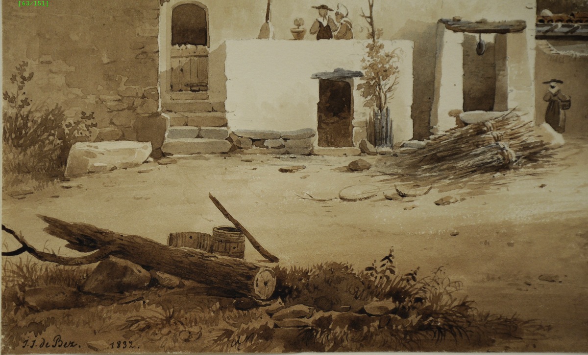 Aquarelle signée et datée 1832, contrecollée et titrée sur le carton.