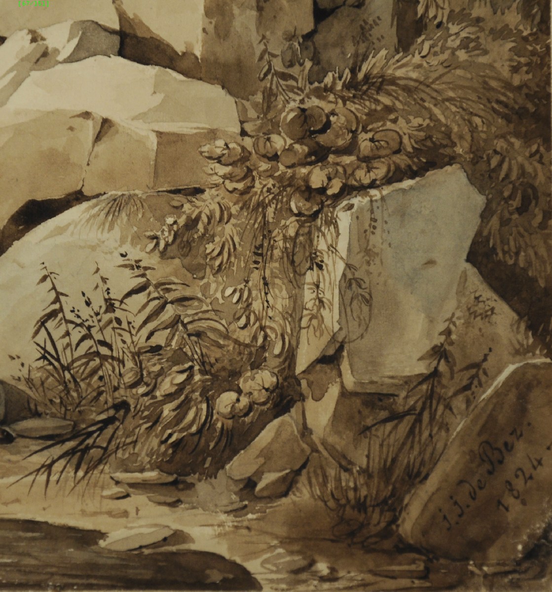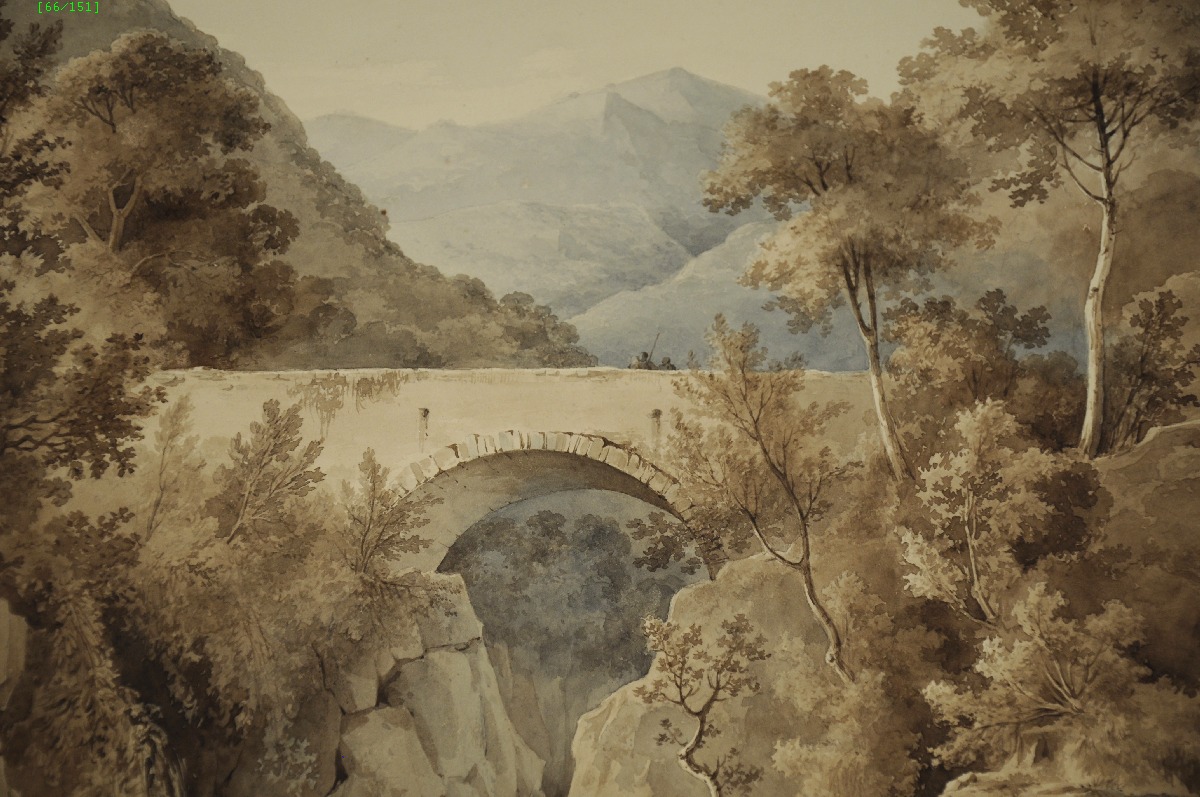 Aquarelle signée et datée 1824, contrecollée et titrée sur une feuille.