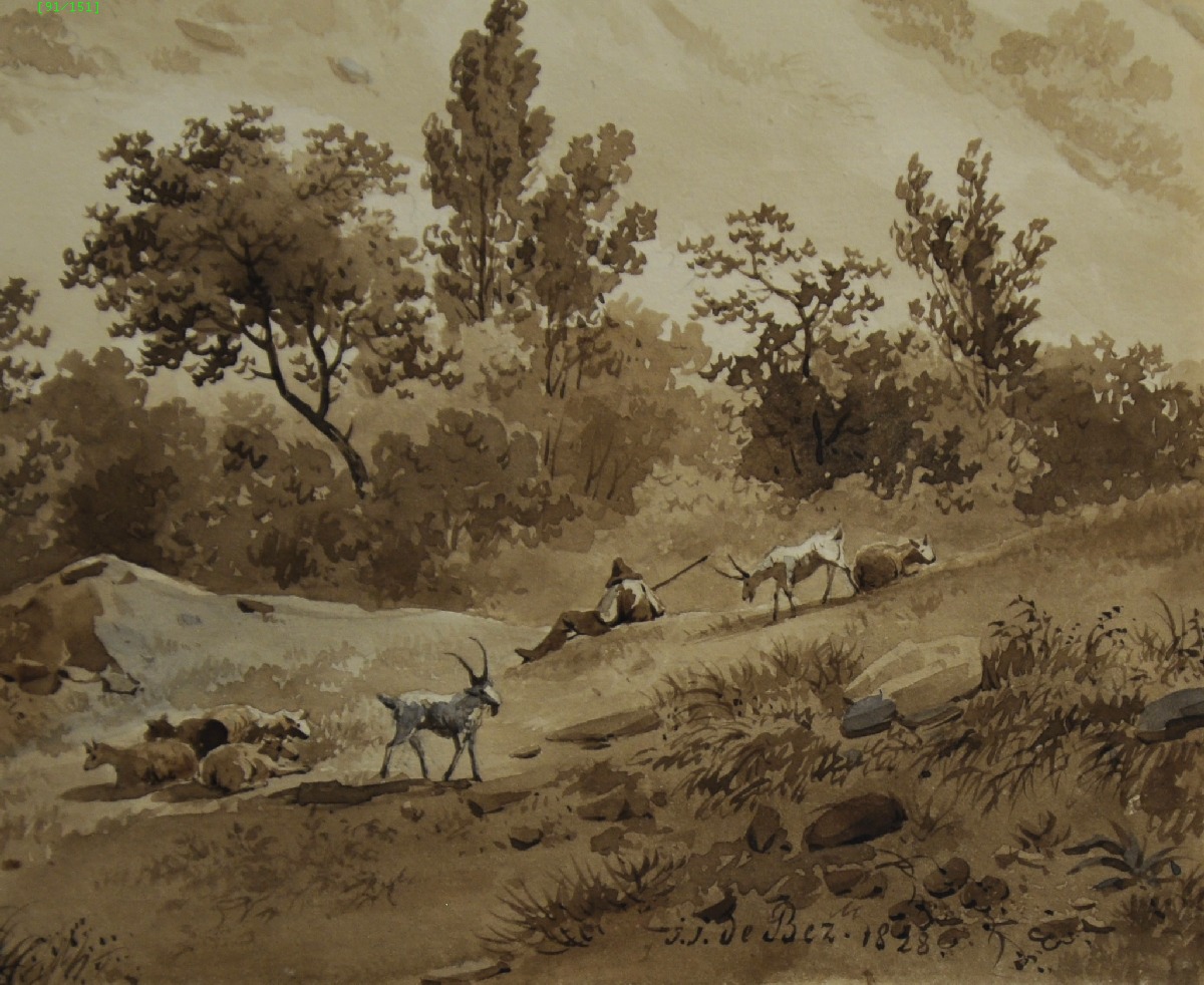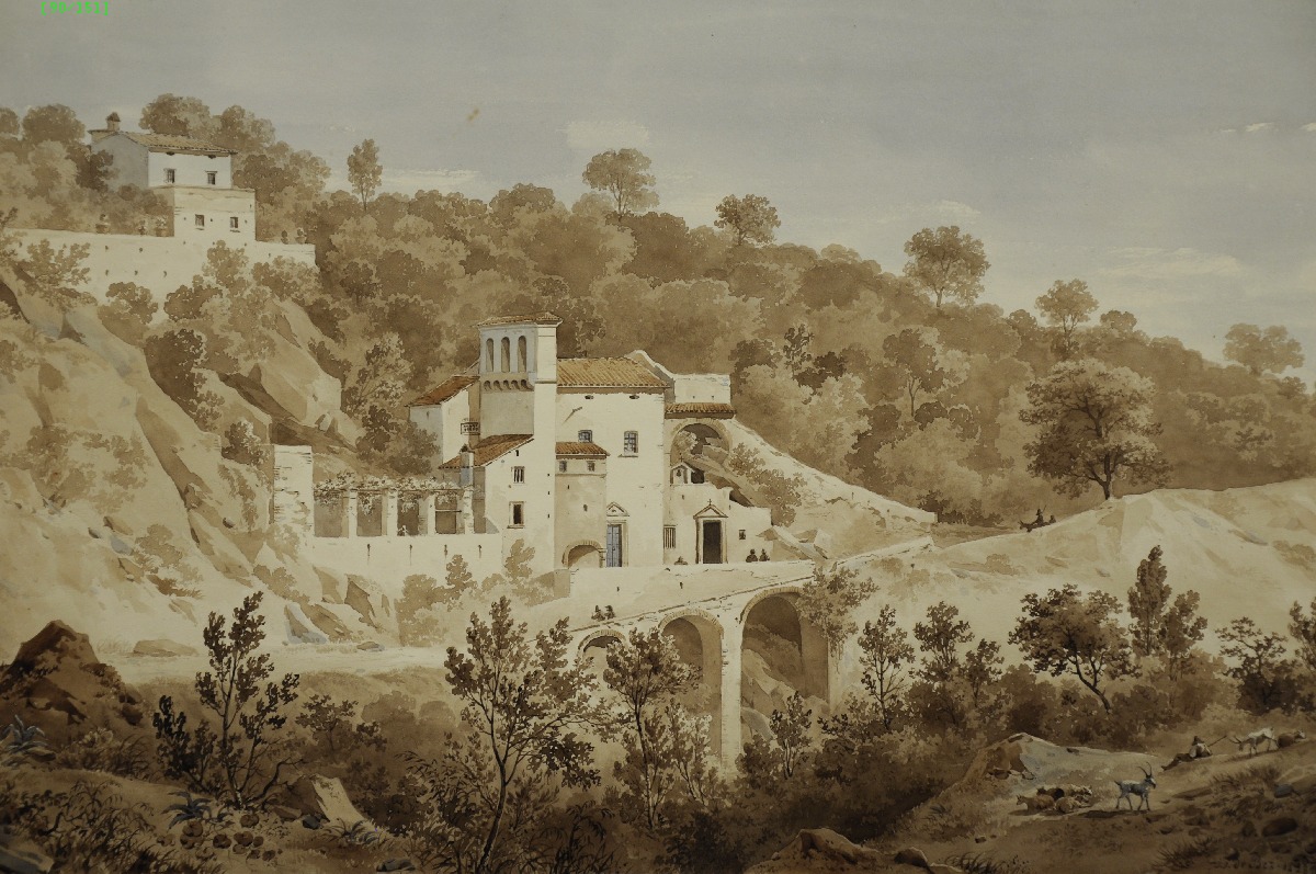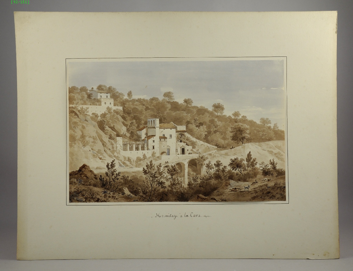 Aquarelle signée et datée 1828, contrecollée et titrée sur le carton.