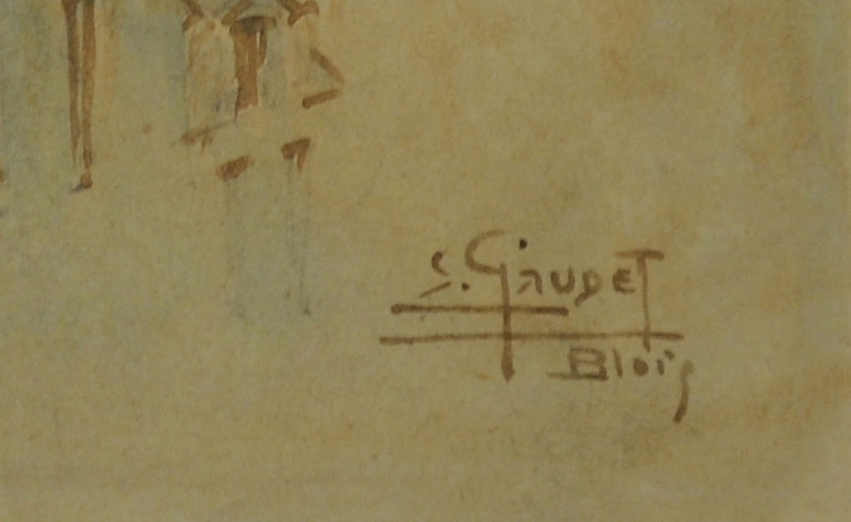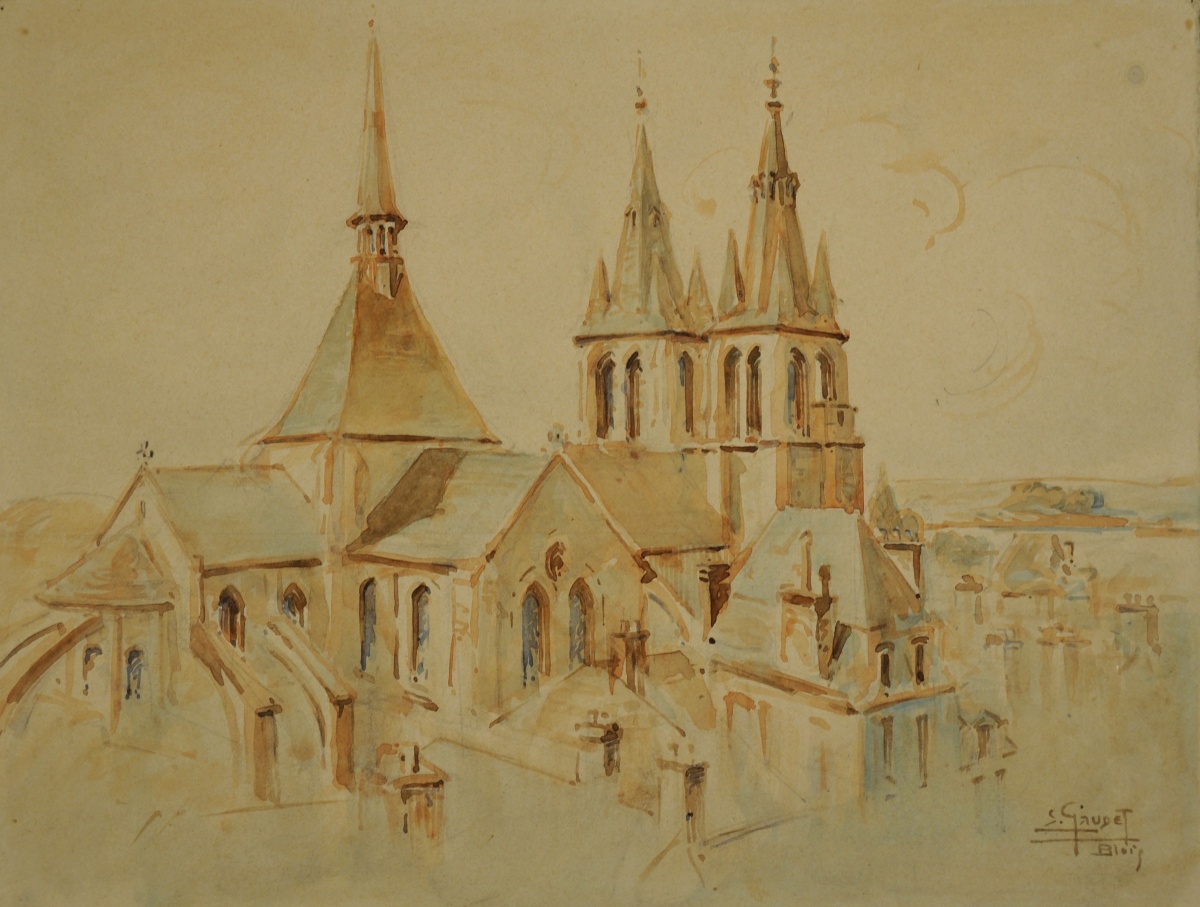 Joint: Vue de l'église Saint-Nicolas à Blois. Aquarelle signée en bas à droite. 25 x 33 cm.