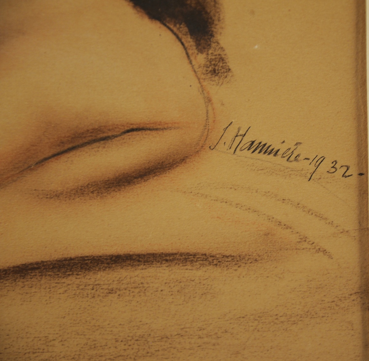 Sanguine, trois crayons, signée à droite et datée "1932."
