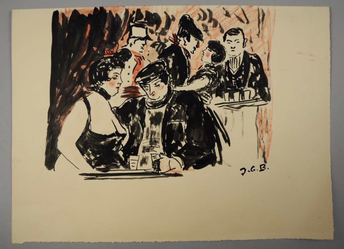 Gouache et crayon rouge, signée J.G.B en bas à droite.