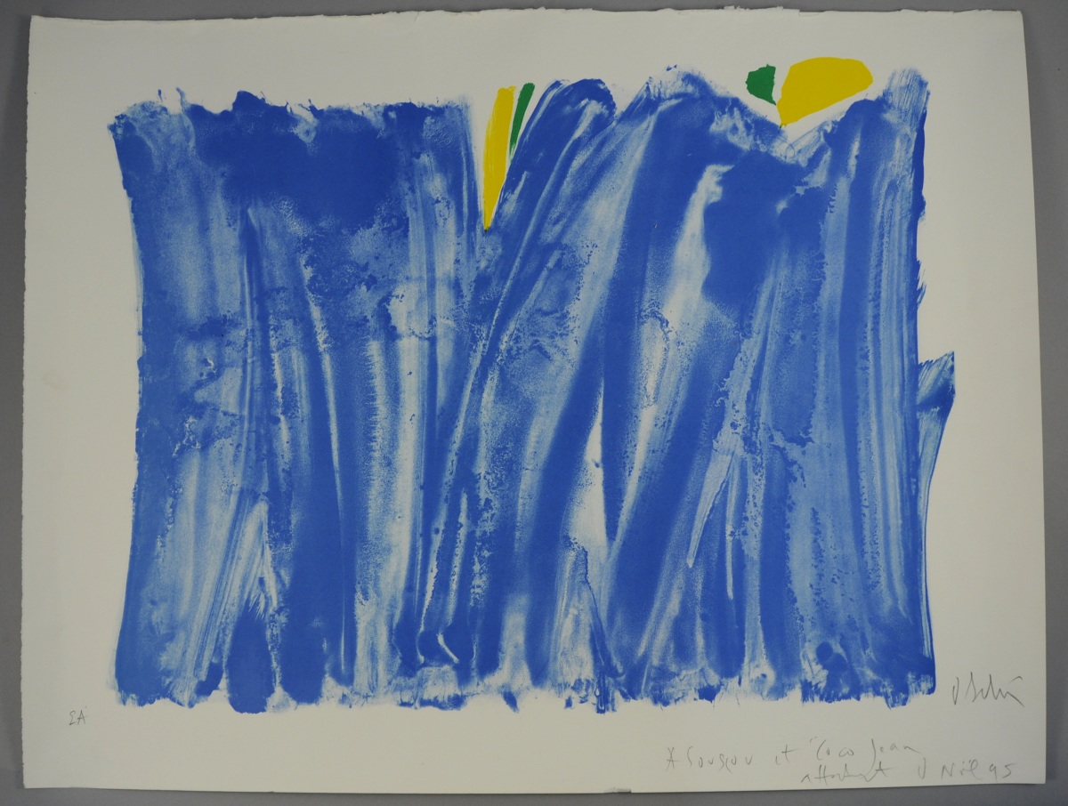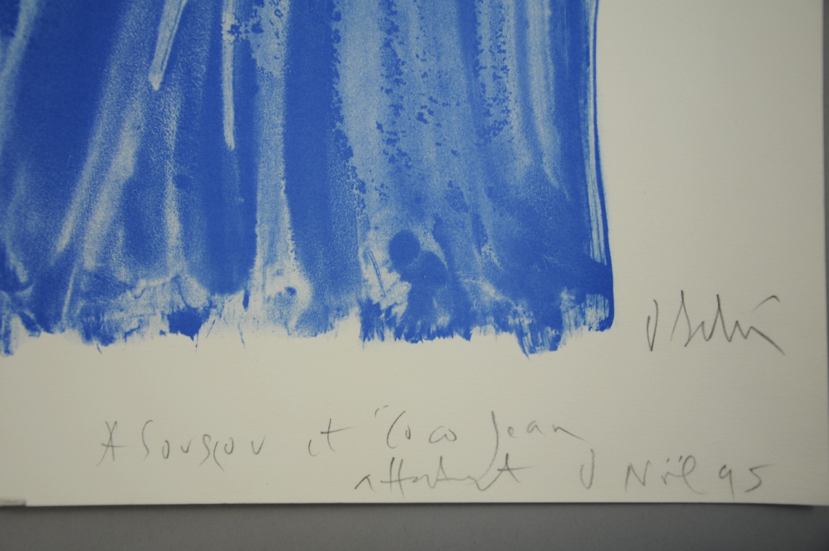 Lithographie originale en couleurs, sur vélin d'Arches. Signée en bas à droite avec envoi et datée: