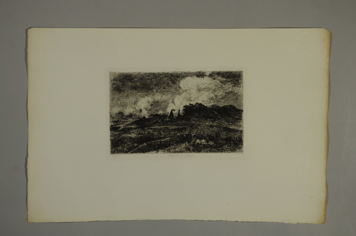 Joint: Du même auteur. Intérieur d'étable à Septeuil. Eau-forte signée dans la planche. 48 x 31 cm.