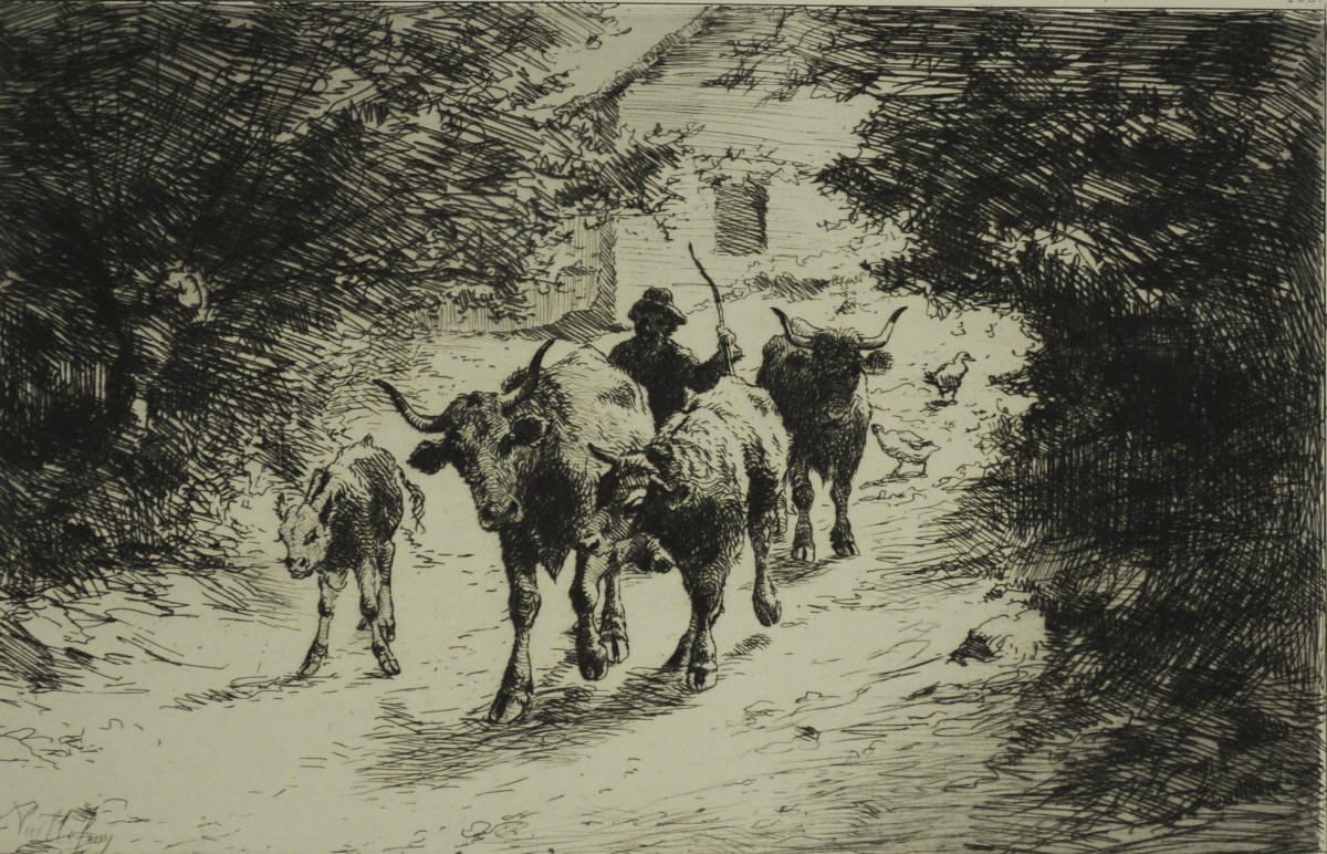 Réunion de 29 EAUX-FORTES, représentant des paysages de France, par Edmond Yon, De Vuillefroy, De Gourcy, Porcher... (rousseurs, déchirures)