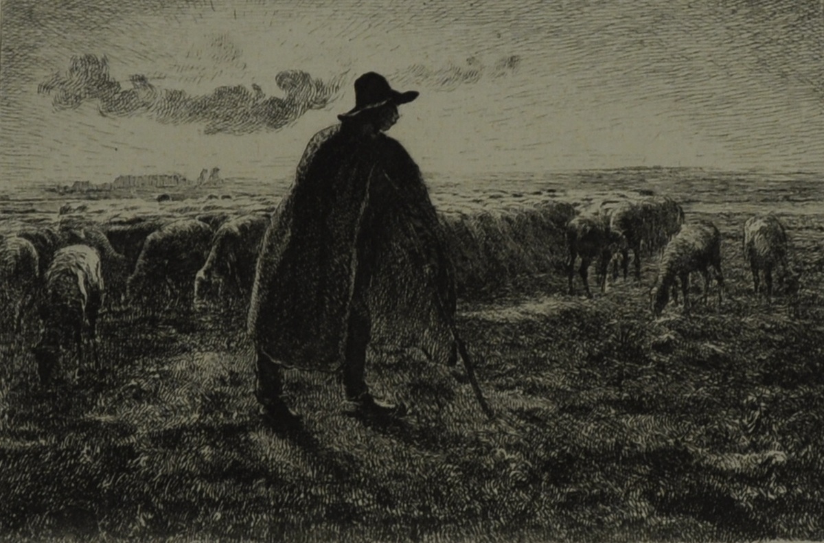 Réunion de 32 EAUX-FORTES, représentant des scènes de la vie rustique, d'après Millet, Germain, Roybet, Bonvin... (rousseurs)
