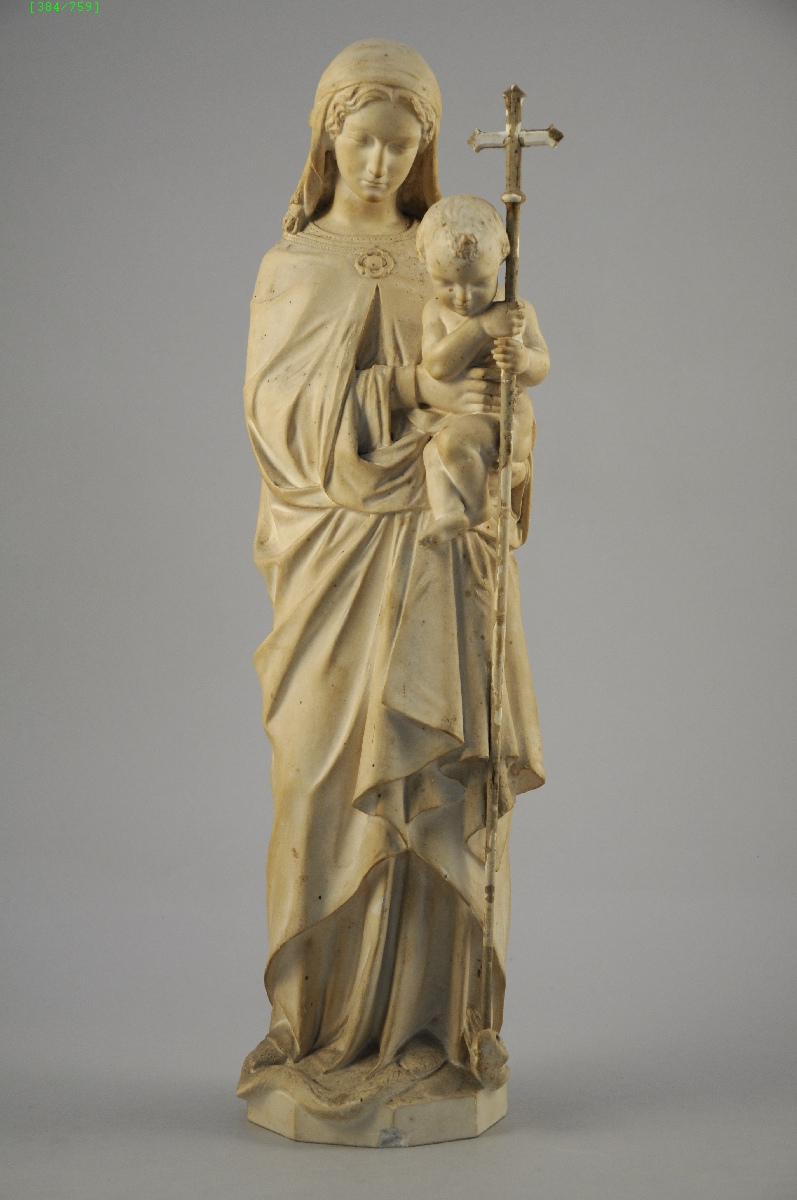 VIERGE à l'Enfant terrassant le serpent.Plâtre. Fin XIXe.Haut. 49 cm.