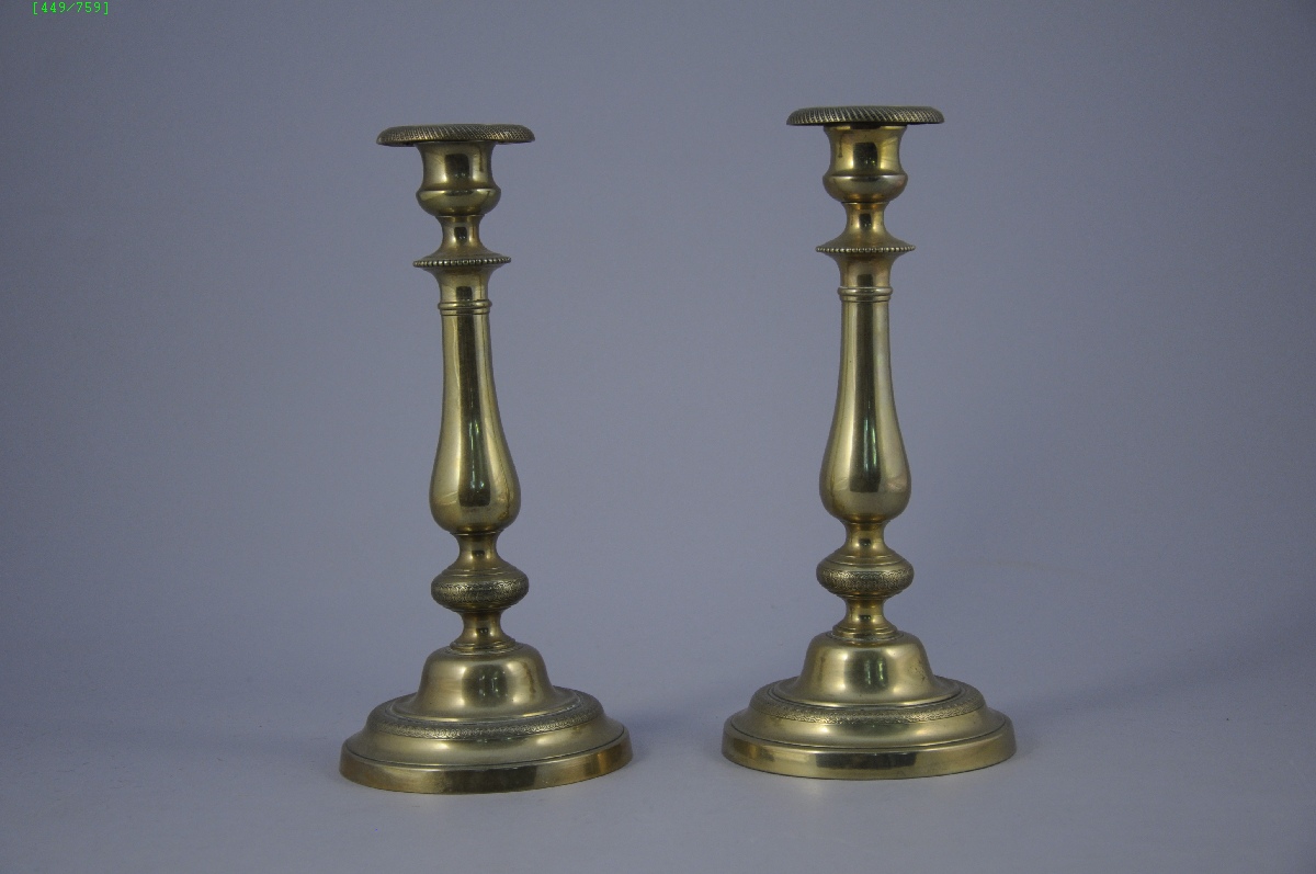 Paire de CHANDELIERS en laiton ciselé de petites fleurs dans des cercles.