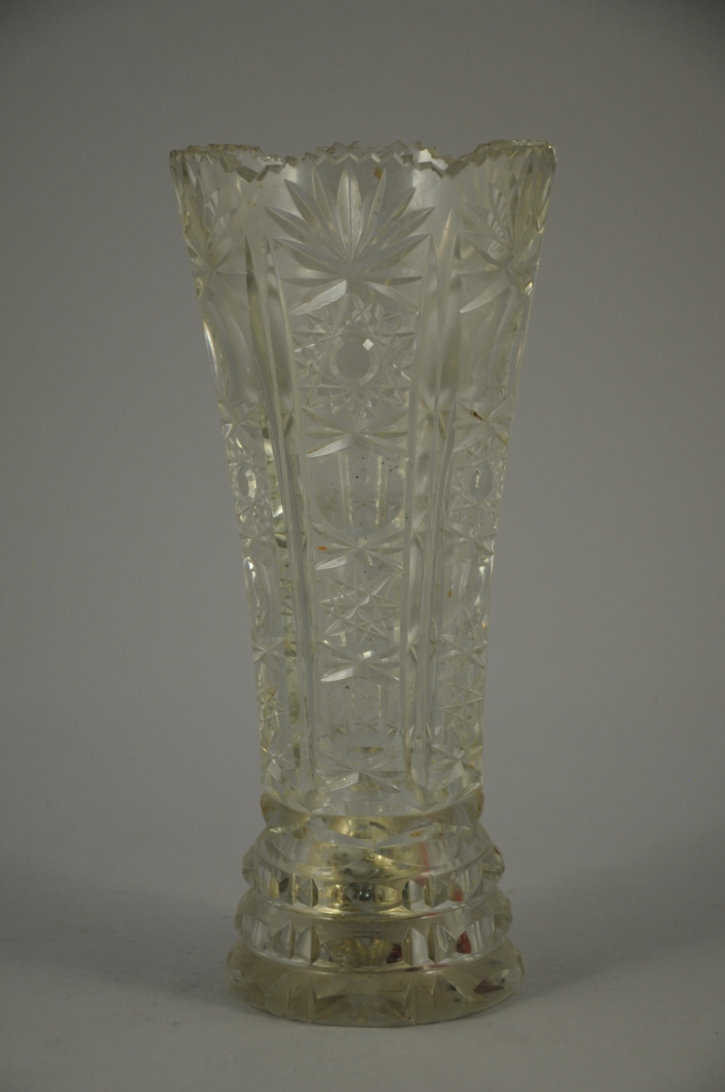 VASE en cristal moulé et poli, fond à facettes. XXe.