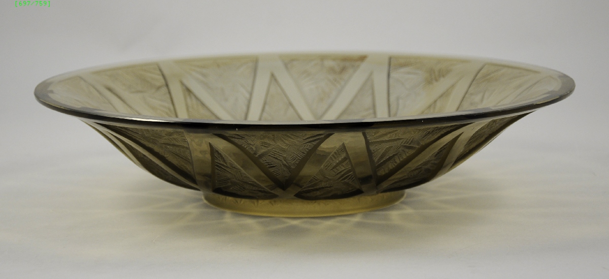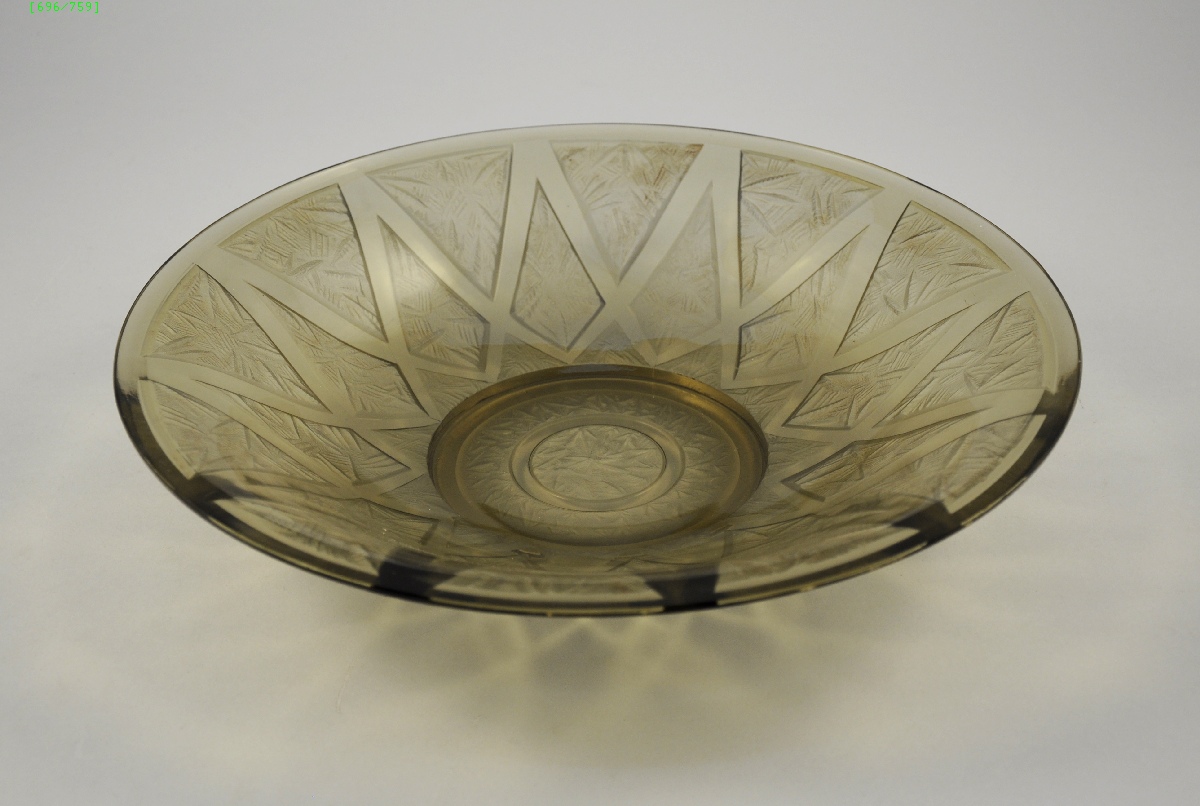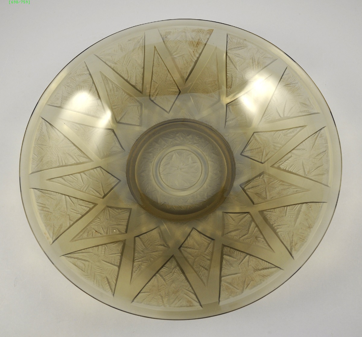 VERLYS. COUPE en verre moulé-pressé, à décor de croisillons polis sur fond amati. Marquée au centre "Verlys France".
