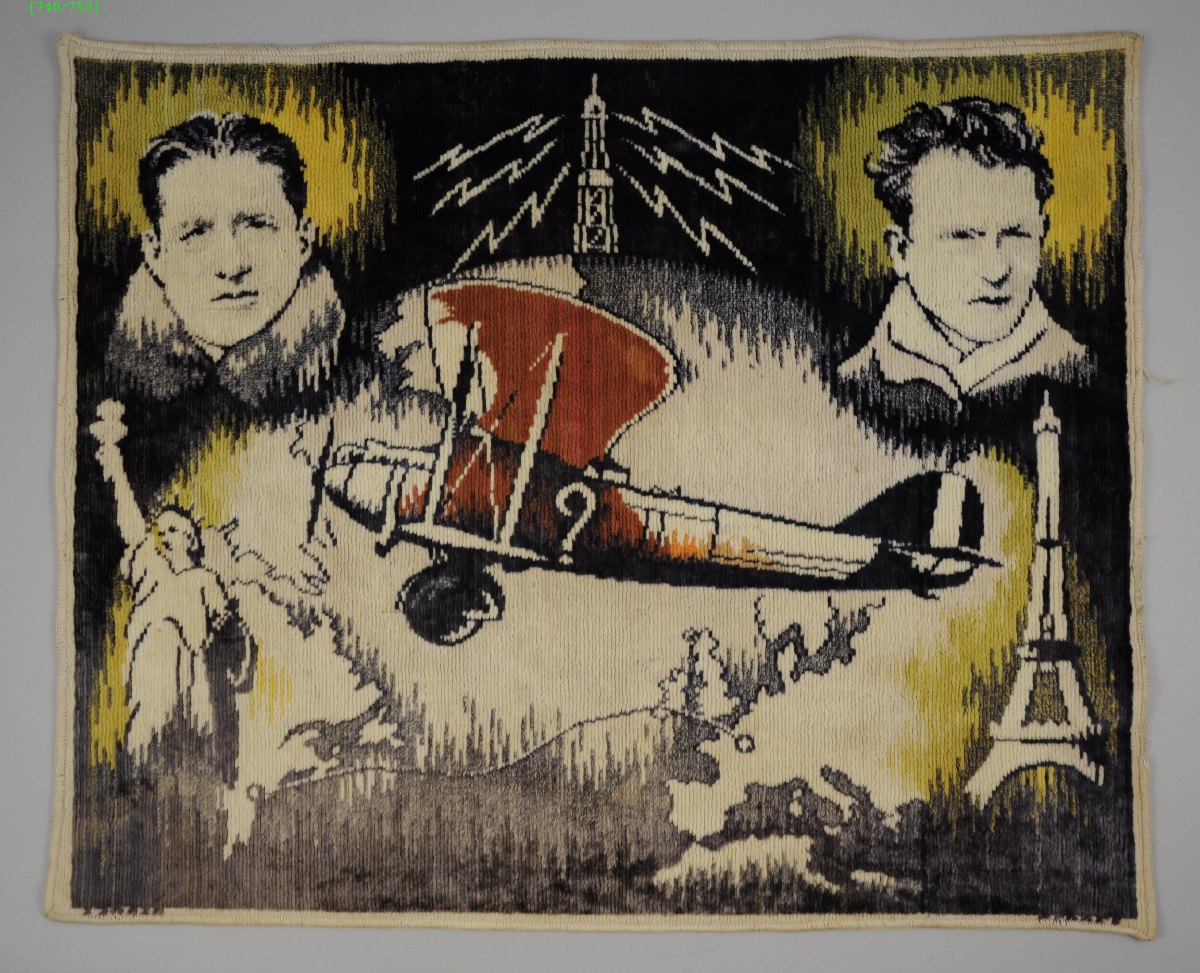 TAPIS mural évoquant le souvenir du voyage de Costes et Bellonte à bord de leur avion "le Point d'interrogation".