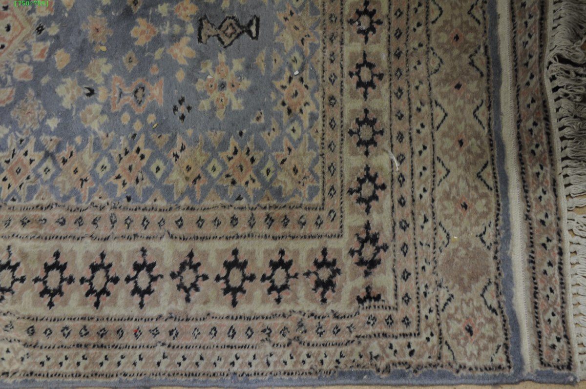TAPIS d'Orient galerie en laine à fond bleu, Pakistan. Long. 315 Larg. 94 cm.