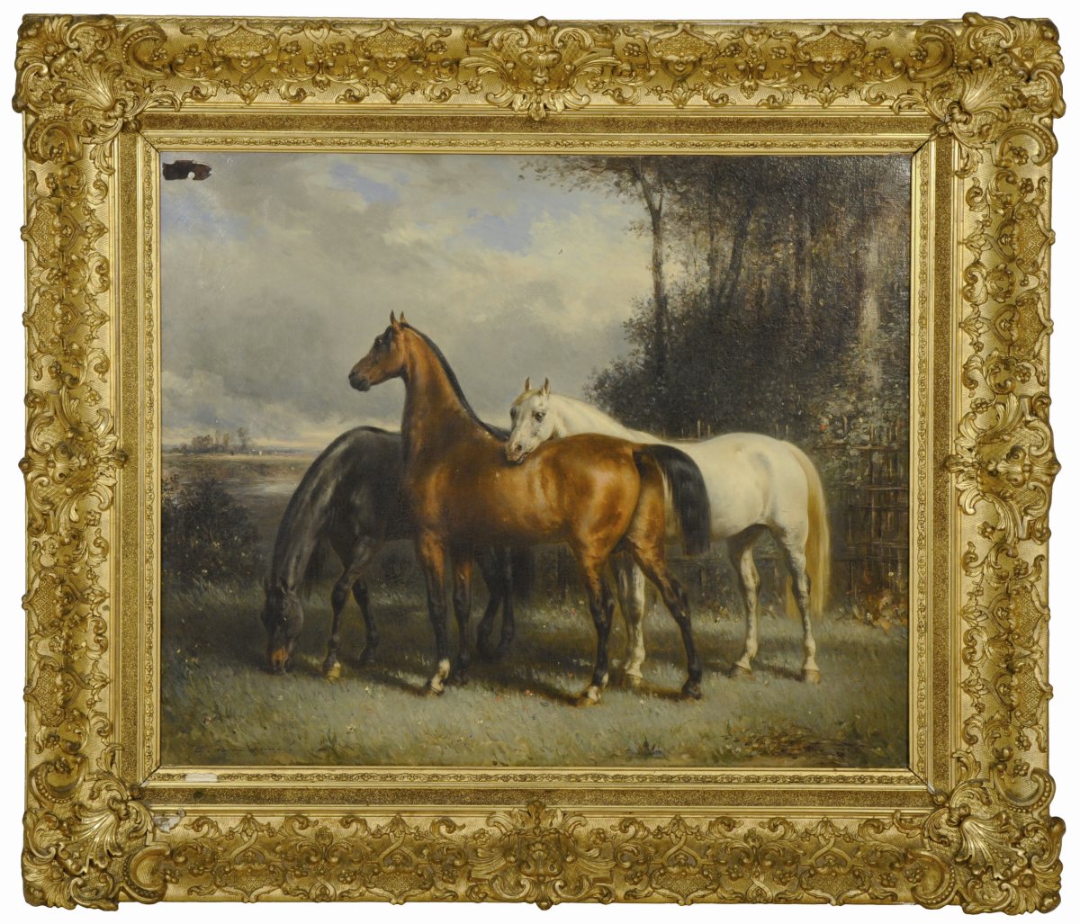 François-Émile de LANSAC (Tulle, 1803 - Paris, 1890)Trois chevaux.Sur sa...