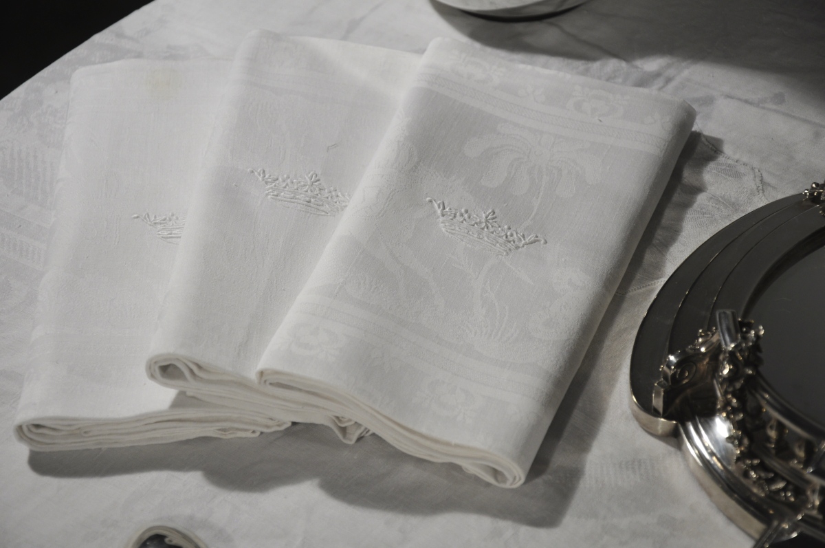 - 30 serviettes rebrodées d’une couronne de marquis. 94 x 82 cm.