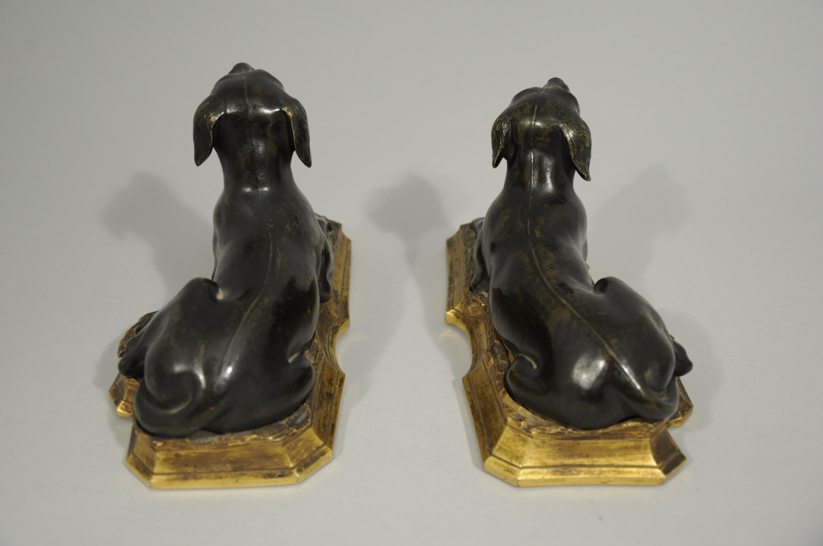 Paire de PLAQUES à PAPIERS à motifs de chiens en bronze patiné sur une terrasse en bronze doré.