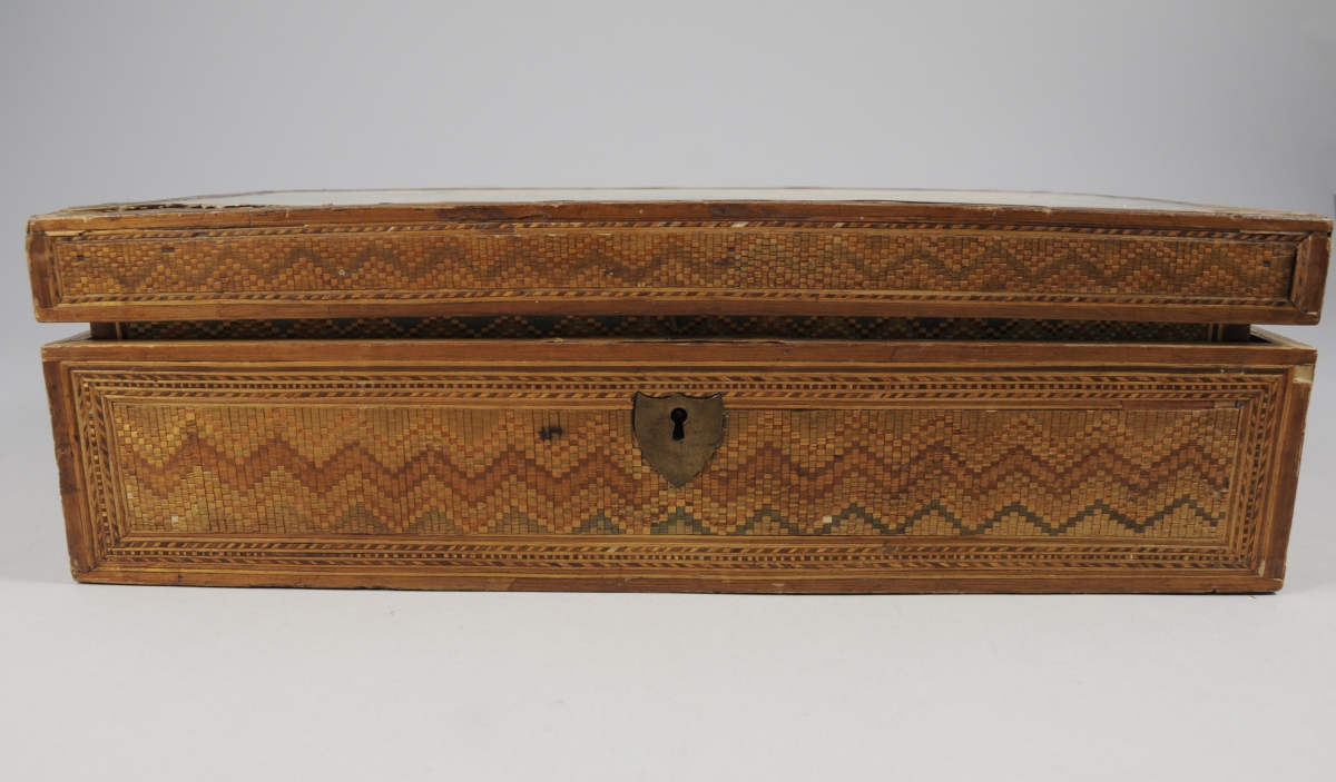 BOÎTE à OUVRAGES en marqueterie de paille.