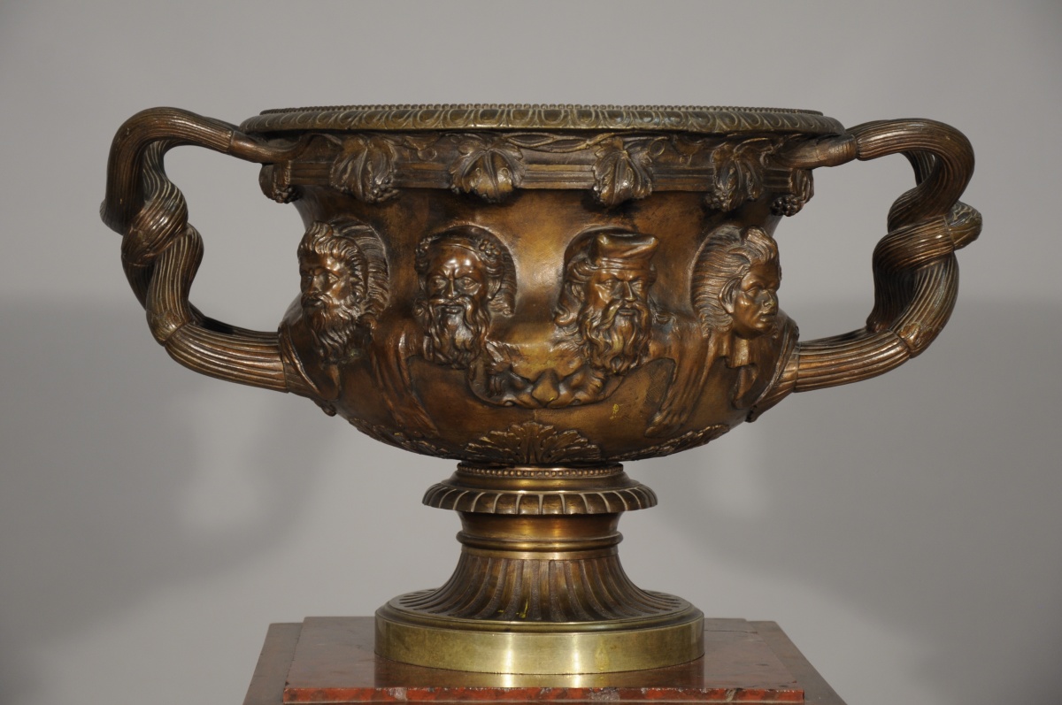 Le cratère en calice grec du premier siècle avant Jésus-Christ, dit "Vase Borghèse", entré dans les collections du Louvre, en 1808, présente des mascarons en têtes de silènes qui inspirent toute l'Europe à partir de sa découverte, en 1566, dans les jardins de Salluste à Rome.