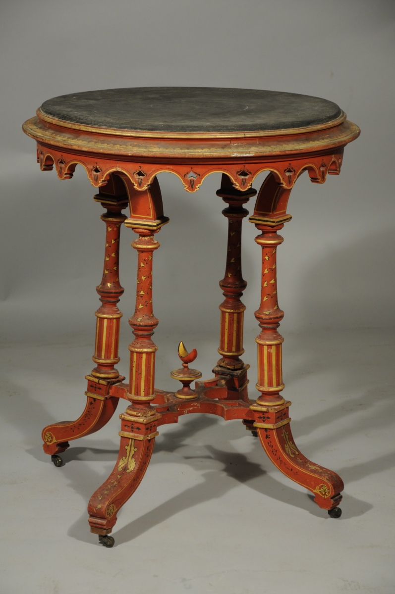 Table: Diam. 60, Haut. 74 cm (un pied recollé).