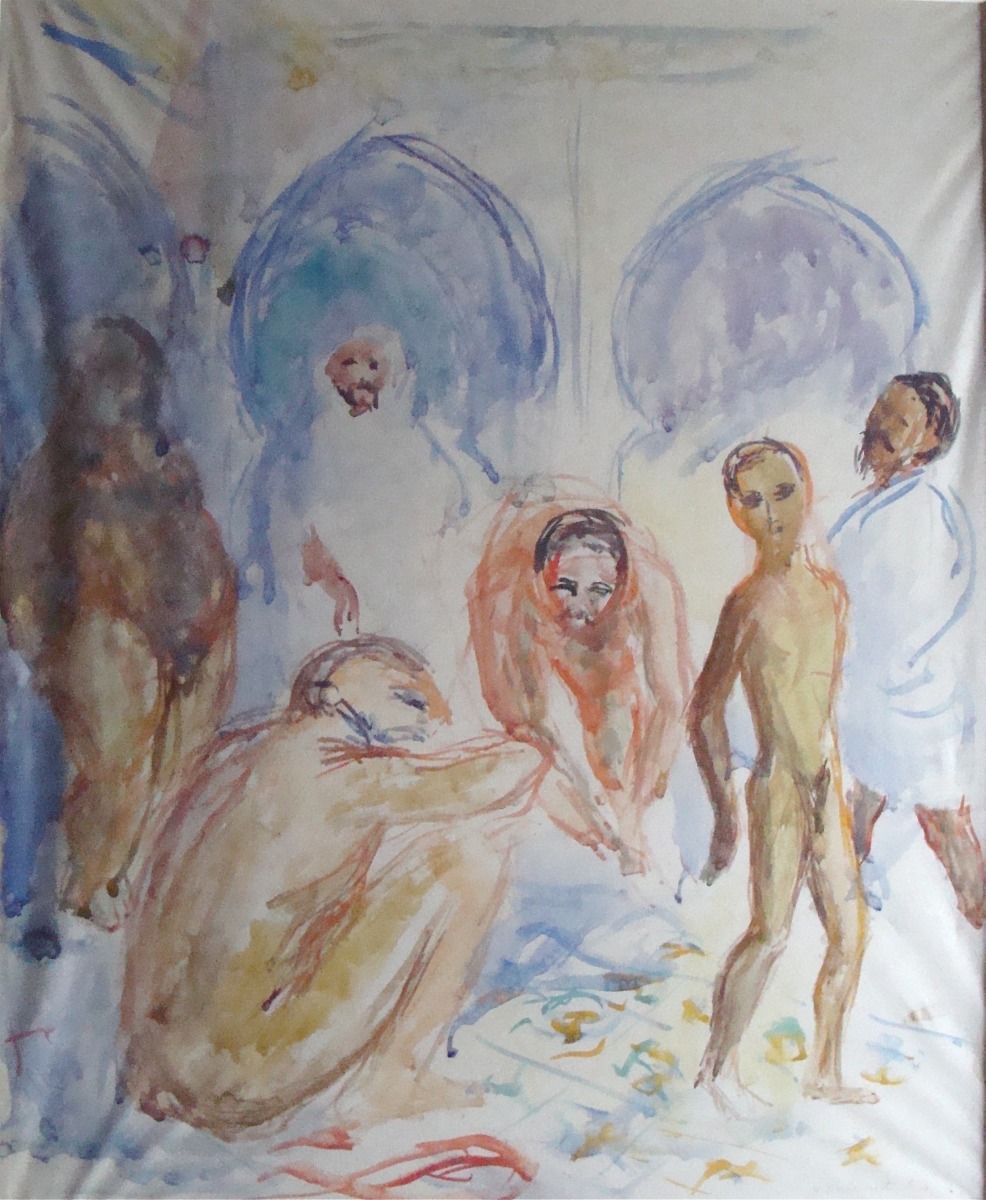 " Hammam d'hommes ".Aquarelle signée et datée en bas à...