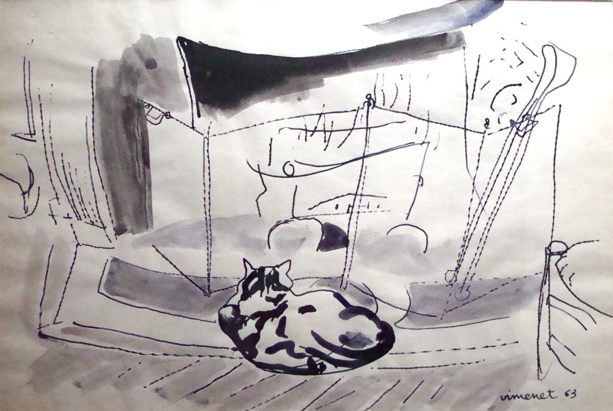 Dessin à l'encre et lavis signé et daté en bas à droite à l'encre: " Vimenet 63 ".