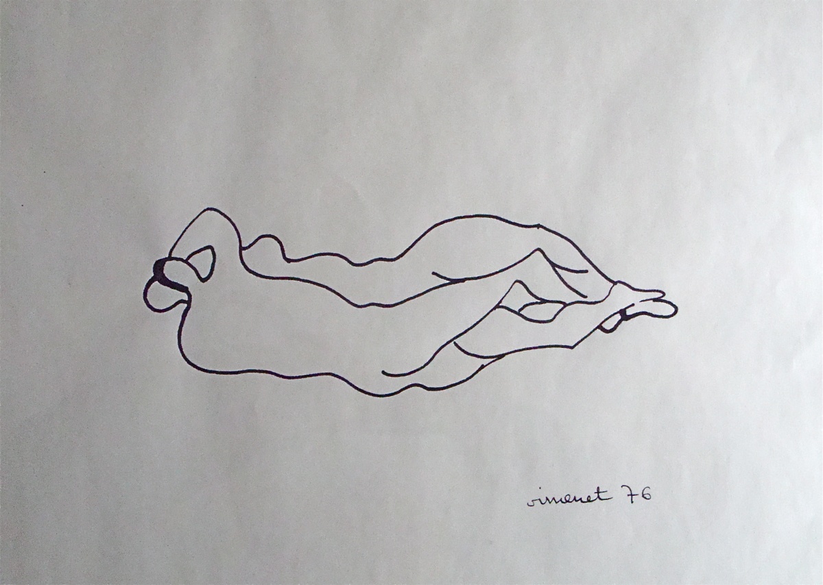 Dessin à l'encre signé et daté en bas à droite à l'encre: " Vimenet 76 ".