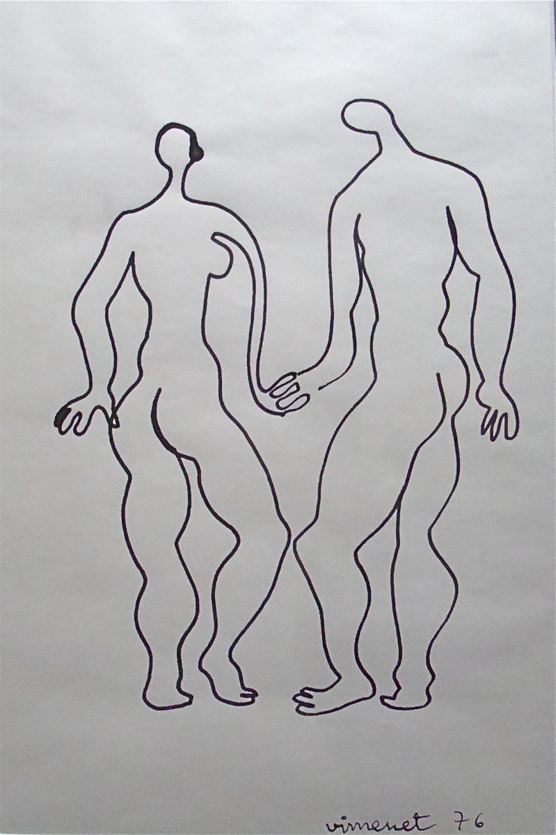 Dessin à l'encre signé et daté en bas à droite à l'encre: " Vimenet 76 ".